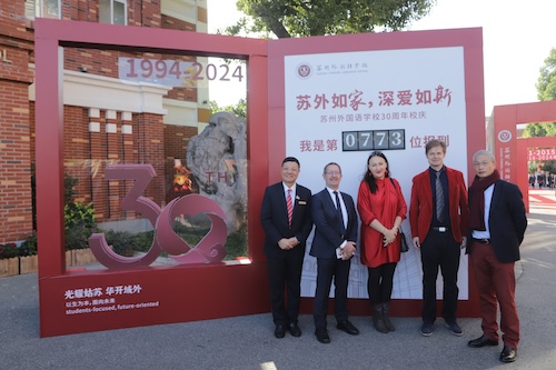 早在德国时,德国师生就录制了视频庆祝苏外三十周年校庆。今天,他们带着这份跨越国界的情谊,亲临苏外,与苏外师生共同沉浸在这一辉煌盛典之中。