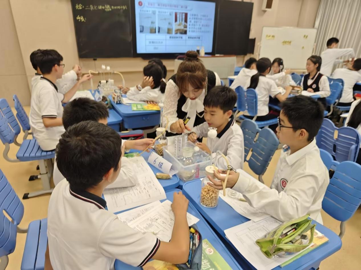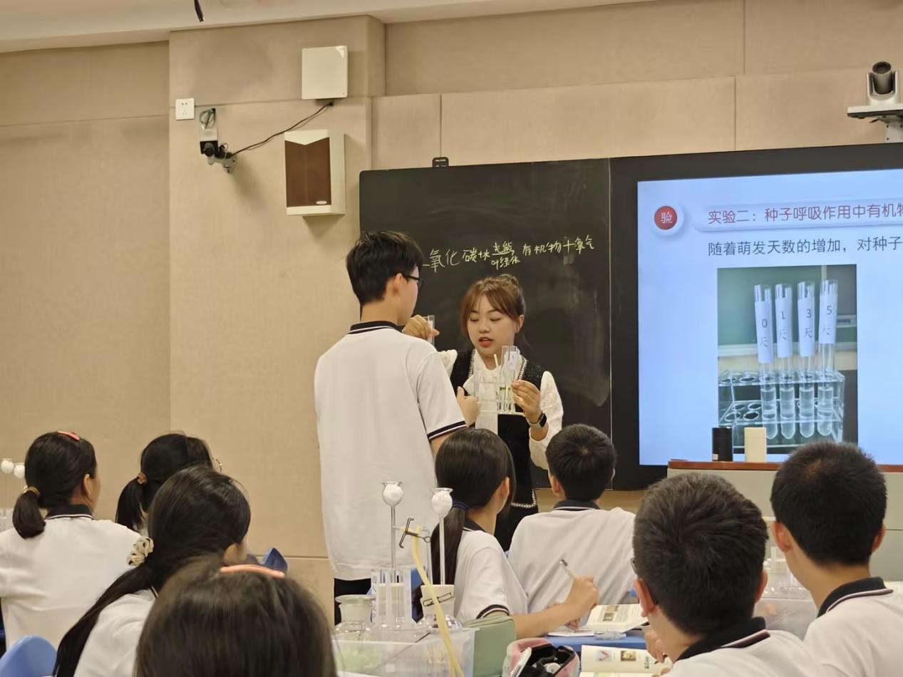 孙教师利用小小的黄豆种子,巧妙设计了7个实验,通过一步步的实验引导学生推导出植物的呼吸作用发生过程,孙老师还引进了前沿的二氧化碳传感器检测植物呼吸作用发生的时间段,让学生在做中玩,做中学,在活动中主动获得知识,并学以致用解决生活中的实际问题,孩子们兴趣盎然,全神参与,感叹这样的生物课好玩又有趣!