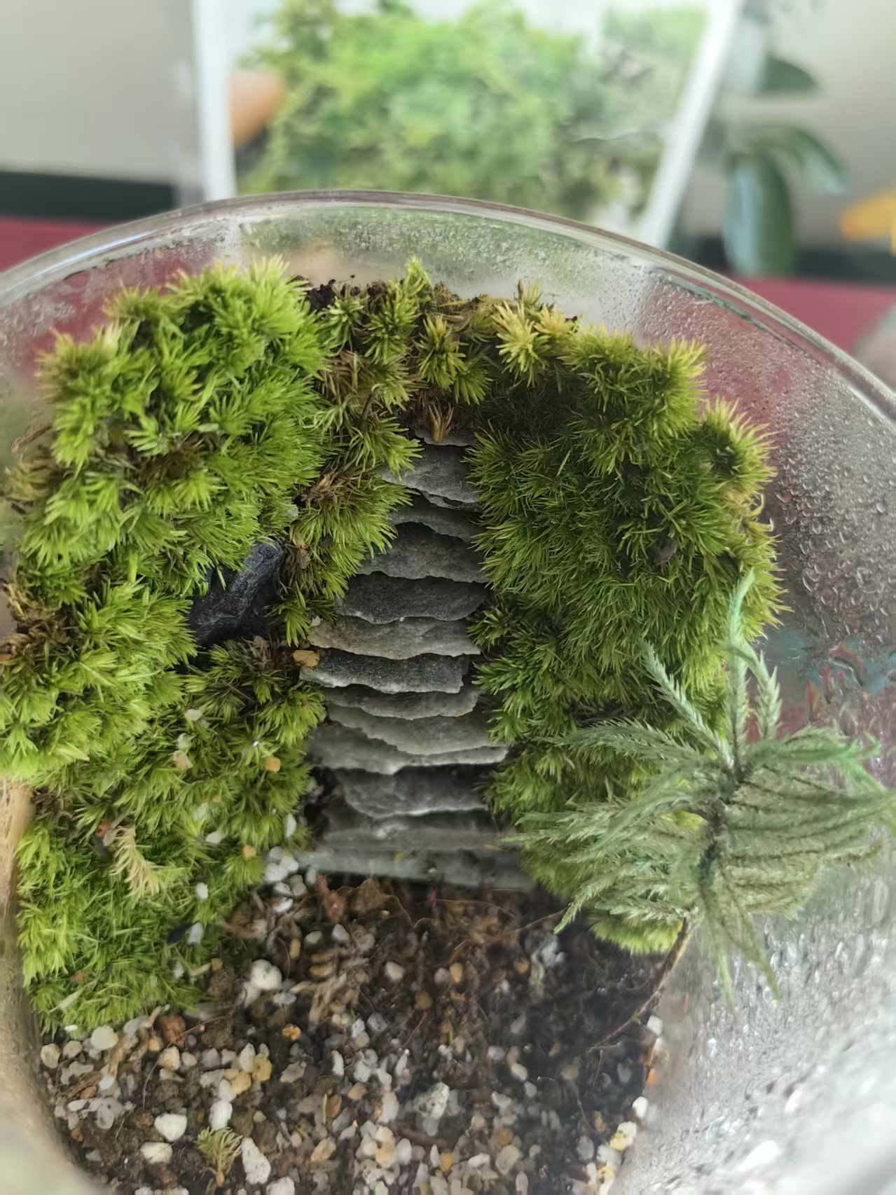 此次作品展并非简单的生物手工制作,而是跨学科学习理念的深度落地。从构思到成品,学生们全程融合多学科知识与能力:生物学科层面,研究苔藓的生长习性,确保密闭瓶内小生态的长期稳定;美术学科层面,要主动思考色彩协调与构图层次,让“科学瓶”兼具“艺术感”;动手实践中,从玻璃瓶清洗消毒到基质铺设,从苔藓移植到湿度调试,学生们多次试错、不断优化,细节把控与问题解决能力在实践中得到锤炼。这种“学科融合+动手实践”的模式,让学生跳出课本局限,真正实现“做中学、学中悟”,综合素养得到全方位提升。