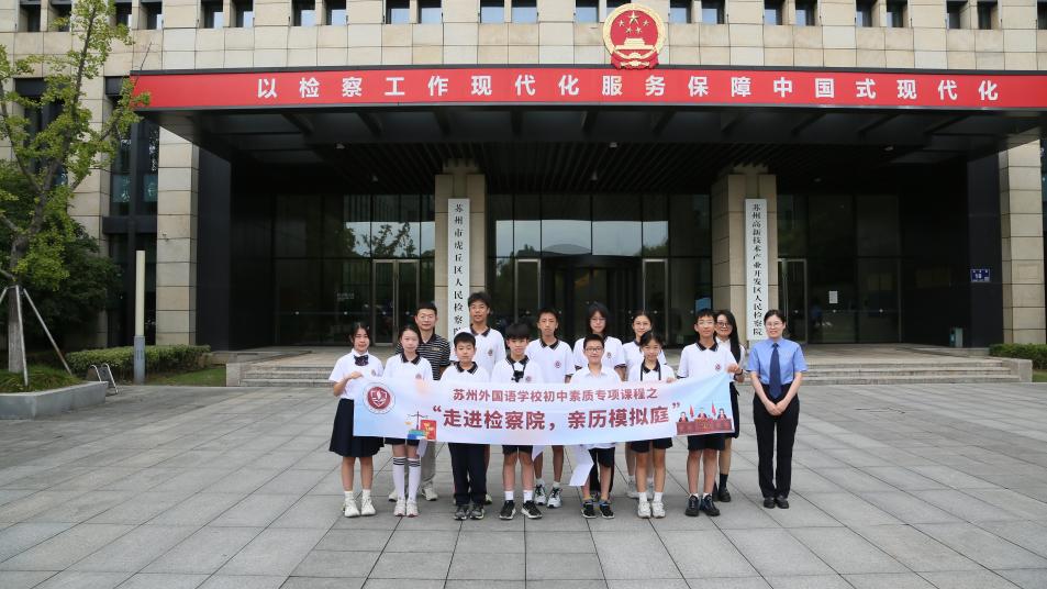 “现在宣布法庭纪律,请旁听人员保持安静……” 当熟悉的模拟法庭台词在虎丘区人民检察院青少年模拟法庭响起,我校初一年级 “模拟法庭” 综合素质拓展课的同学们眼中满是新奇与肃穆。为深化法治教育实践,让青少年直观感受司法公正,我校组织 12名 “模拟法庭” 课程学员走进虎丘区人民检察院,开展了一场 “沉浸式” 法治实践活动,将课本上的法律知识转化为触手可及的真实体验。