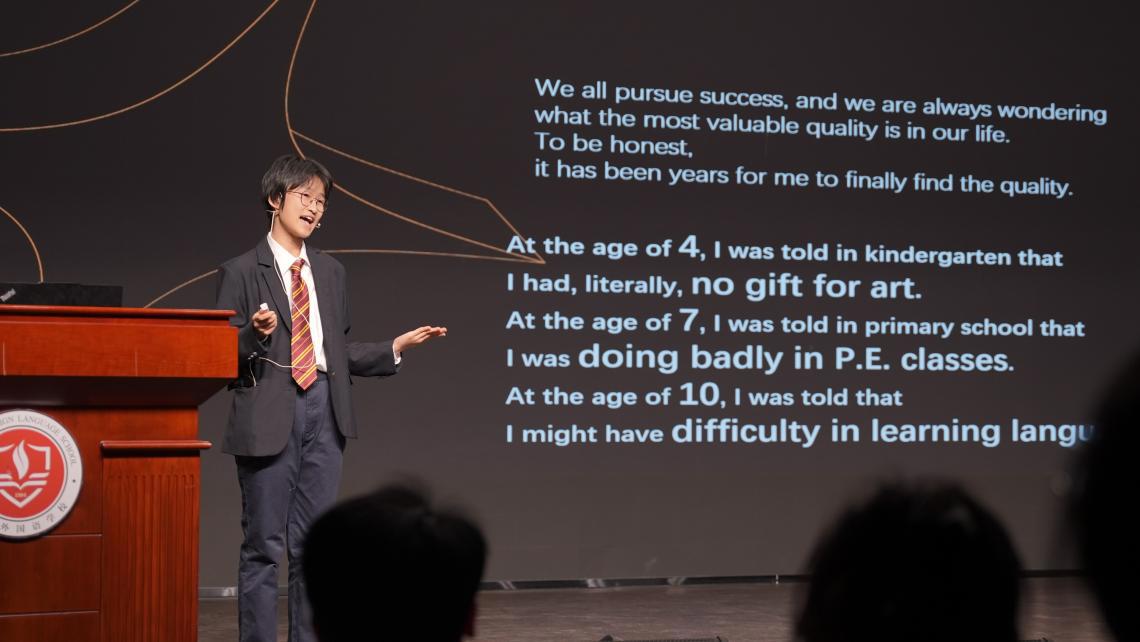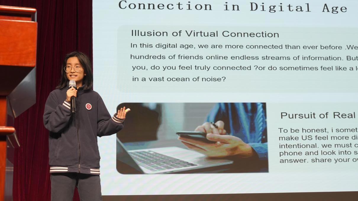 活动紧密呼应英语课程标准的育人导向,以“学用结合、素养立意”为纲,引导学生通过英语演讲践行“学习活动观”,在真实语境中讲述时代关切、中国价值与青春信仰。选手们从“珍惜时间”“真诚连接”“社会公义”,到“自信成长”“钢琴艺术”“相声传承”,多维诠释了价值选择的丰富层次——既有个体才华的绽放、热爱与自信的坚守,亦有人际温度的共情、社会责任的担当,更蕴含对自然时间与生命过程的深刻体悟。