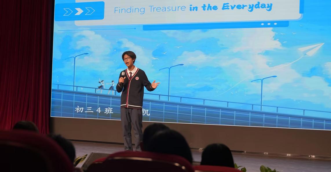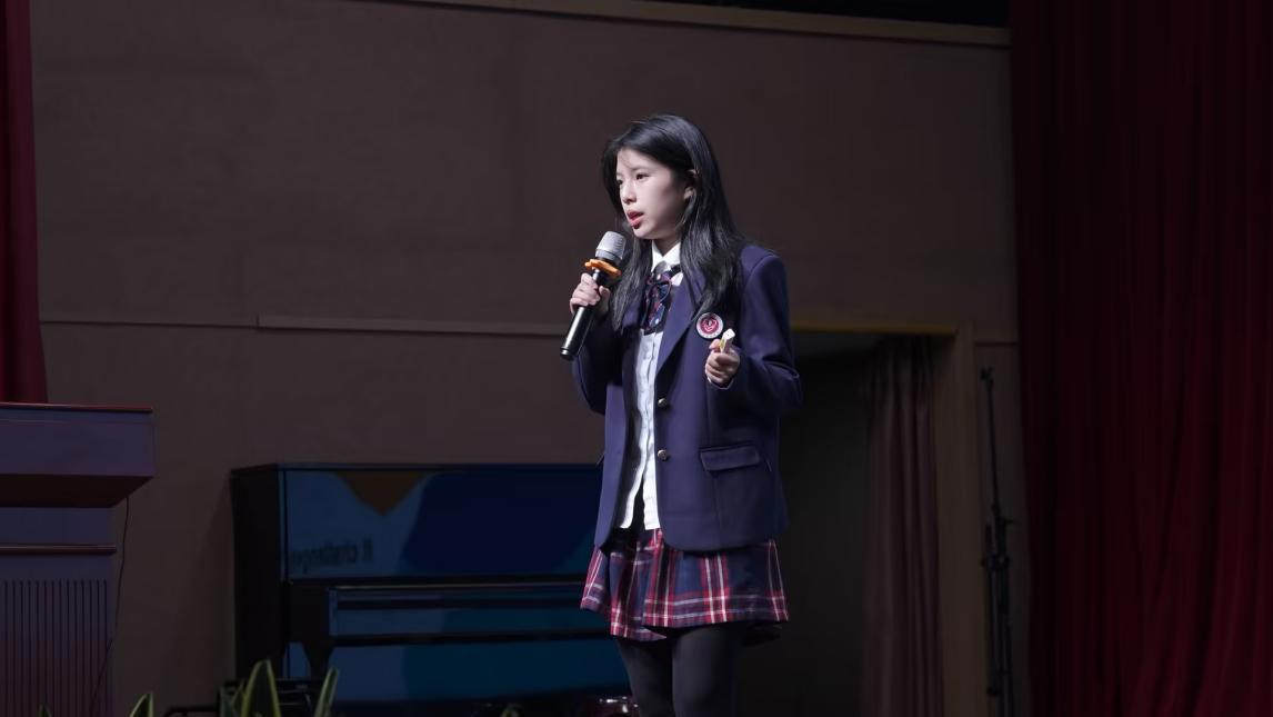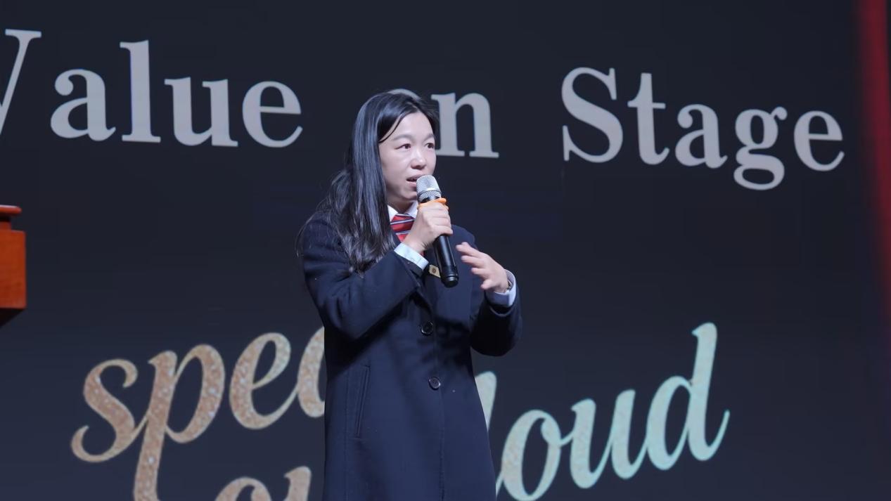 活动尾声,初中英语教研组长汪林珊老师作总结致辞。她充分肯定同学们在语言运用与思想表达上的突破,并强调:“英语学习绝非‘无用之用’,而是联通自我与世界的桥梁。希望你们让英语融入成长的血脉,以世界所能听懂的声音,说出属于中国少年的价值主张。”