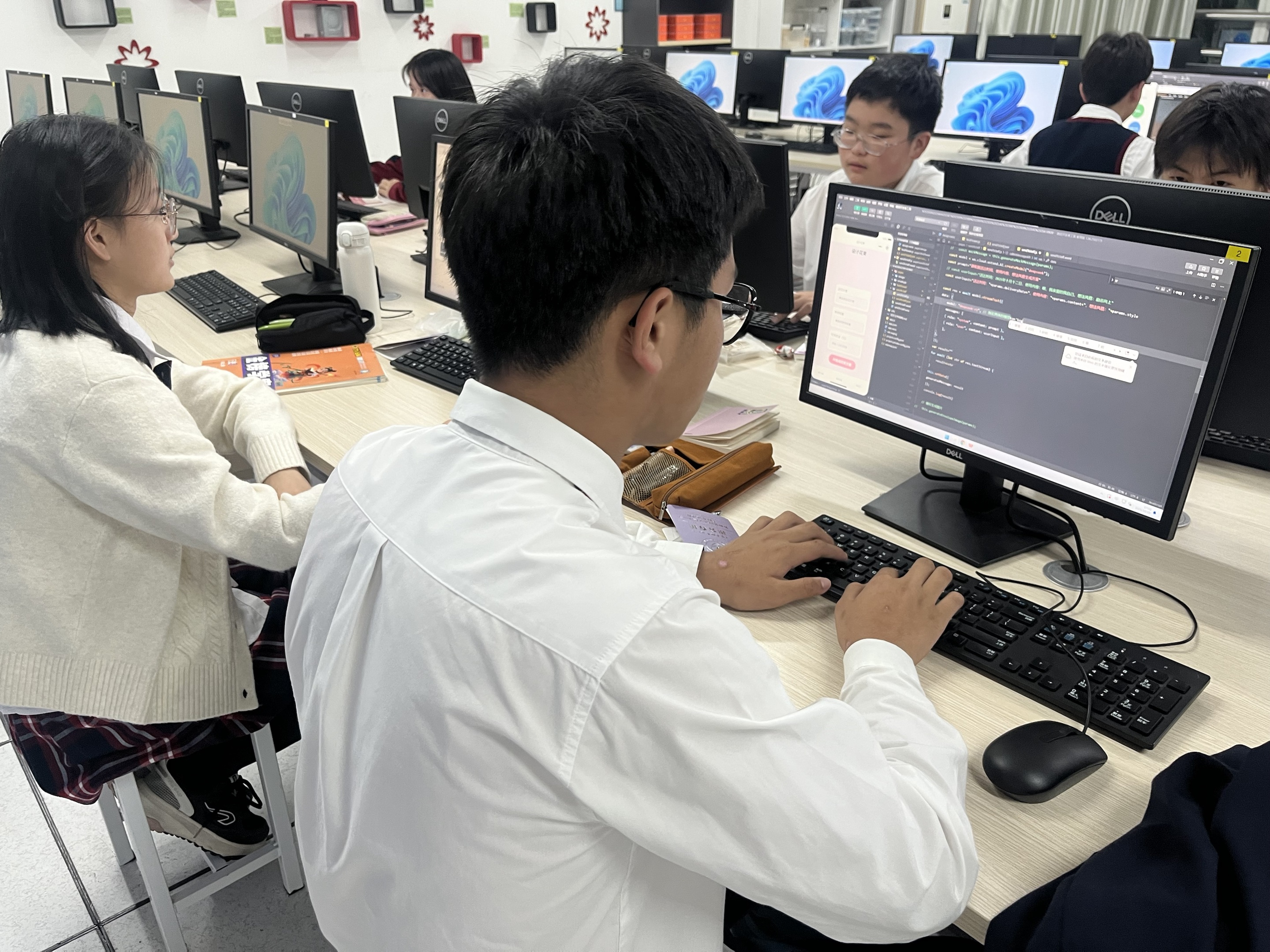 AI编程助手成为每个小组的“编外队员”, 从项目构思阶段利用AI进行可行性分析,到开发阶段借助其理解代码逻辑、调试错误、优化代码,学生们体验了人与AI协作的现代化应用开发流程。面对陌生的技术概念,他们学习如何向AI精准提问;遇到程序报错,他们与AI共同“会诊”,排查问题根源。这不仅极大地降低了学习门槛,更培养了学生与智能工具高效协作的数字时代核心素养。