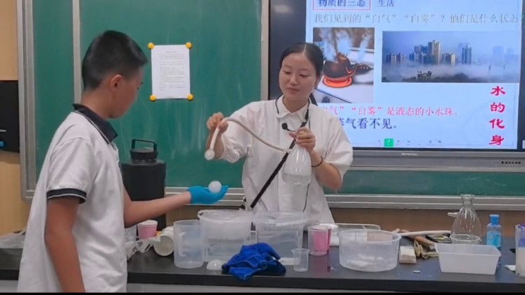 这节课,我们以干冰为载体,让学生了解物质的三种状态,以及物态变化的过程。