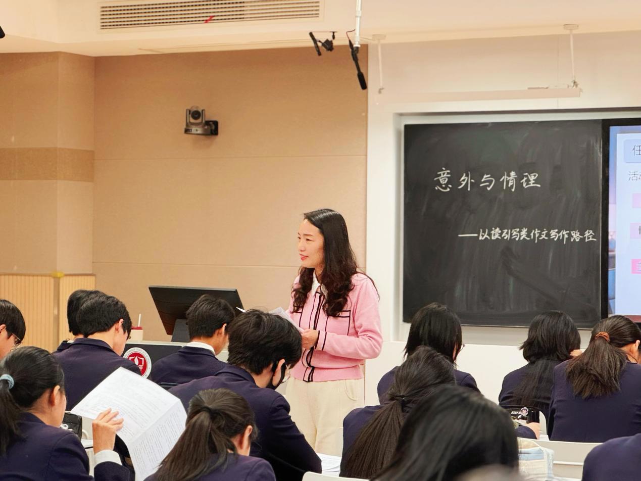 活动伊始,高新区实验中学张明老师带来《变色龙》一课,创设学生小编剧情境,将文章搬上戏剧舞台,通过选取经典镜头,激发学生讨论,环环相扣,让学生置身其中,感受小说魅力。我校初三年级语文教师魏娣老师开设了以《意外与情理——以读引写类作文写作路径》为主题的公开课。魏老师紧扣作文教学目标,以“任务驱动”为主线,以九上期末考试续写作文为案例,引导学生诊断“人物失真”“情节离奇”“主题跑偏”等问题。并围绕“人物一致”“情节合理”“细节具体”“主题深化”四个维度进行升格训练。课堂上,学生们积极参与,热烈讨论,在修改中提升表达,在思辨中建构方法,体现了以生为本的教学理念,赢得了观课教师们的一致好评。