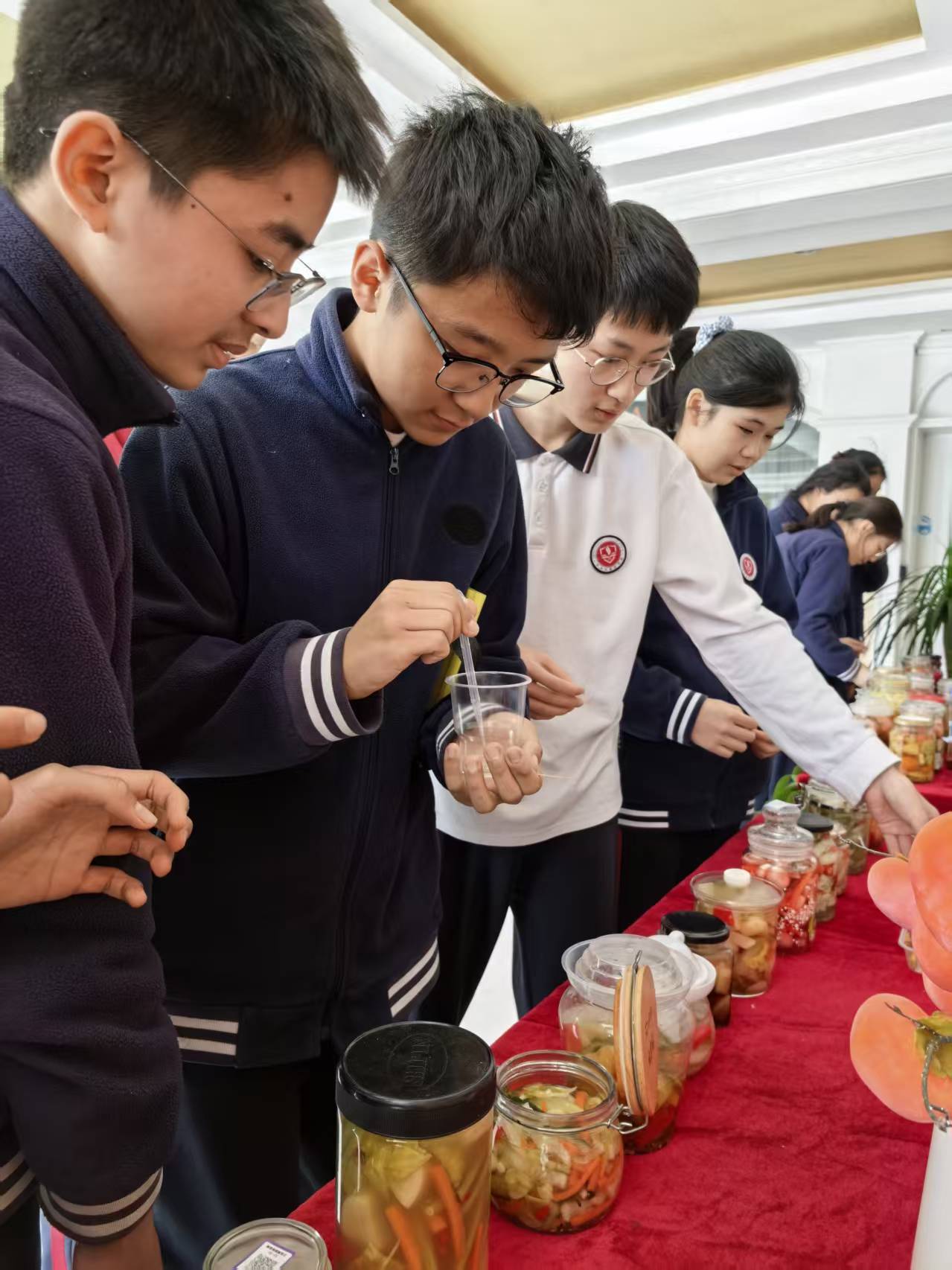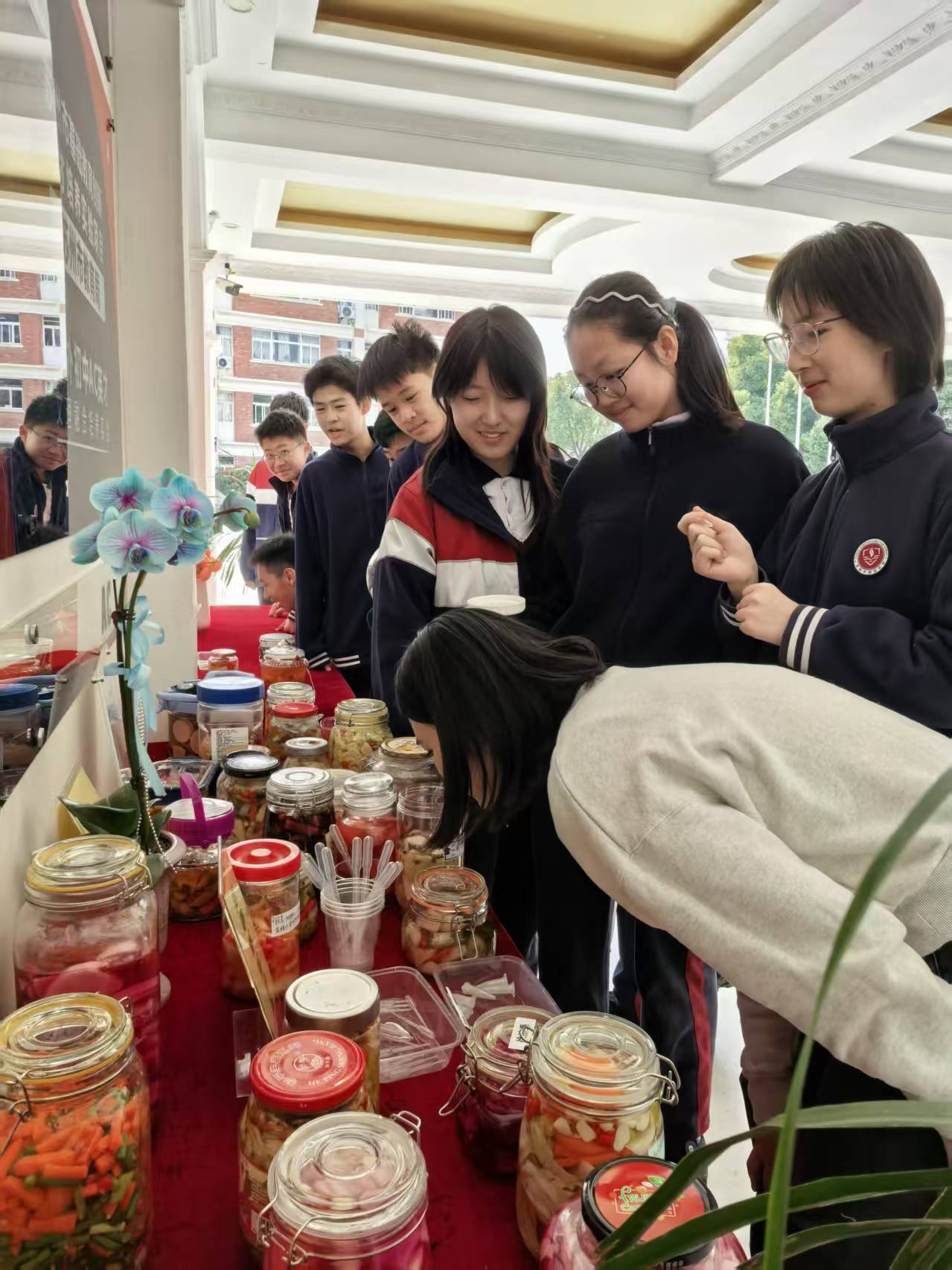 这场别开生面的展示活动,不仅仅是动手能力的比拼,更是一场跨学科思维的盛宴。在泡菜制作与检测的全过程中,学生们不仅运用生物学知识探究乳酸菌的代谢规律,还需借助化学手段进行物质检测,结合劳动技能把控食材配比,还得提升美学运用植物天然色素让泡菜颜色更诱人独特。“我原来以为科学都在实验室里,没想到泡菜坛子就是一个‘微生物工厂’!”参与活动的一位学生感慨道。这种“做中学、学中思”的模式,让学生在解决真实问题中,锻炼了科学探究能力、批判性思维以及团队协作精神,真正实现了“知识”向“素养”的转化 。