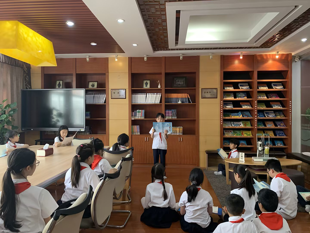 儿童节当天,我们全班同学在图书馆,在书香氤氲的环境里进行诗歌朗诵,为节日的欢乐增添一份七色光。孩子们静静聆听,或沉浸在母爱的温暖中,或沉浸在大自然的神奇中,或追忆童年的瞬间,一张张笑脸是那么欢乐,笑脸是那么灿烂。诗歌的大门被孩子们轻轻叩响。