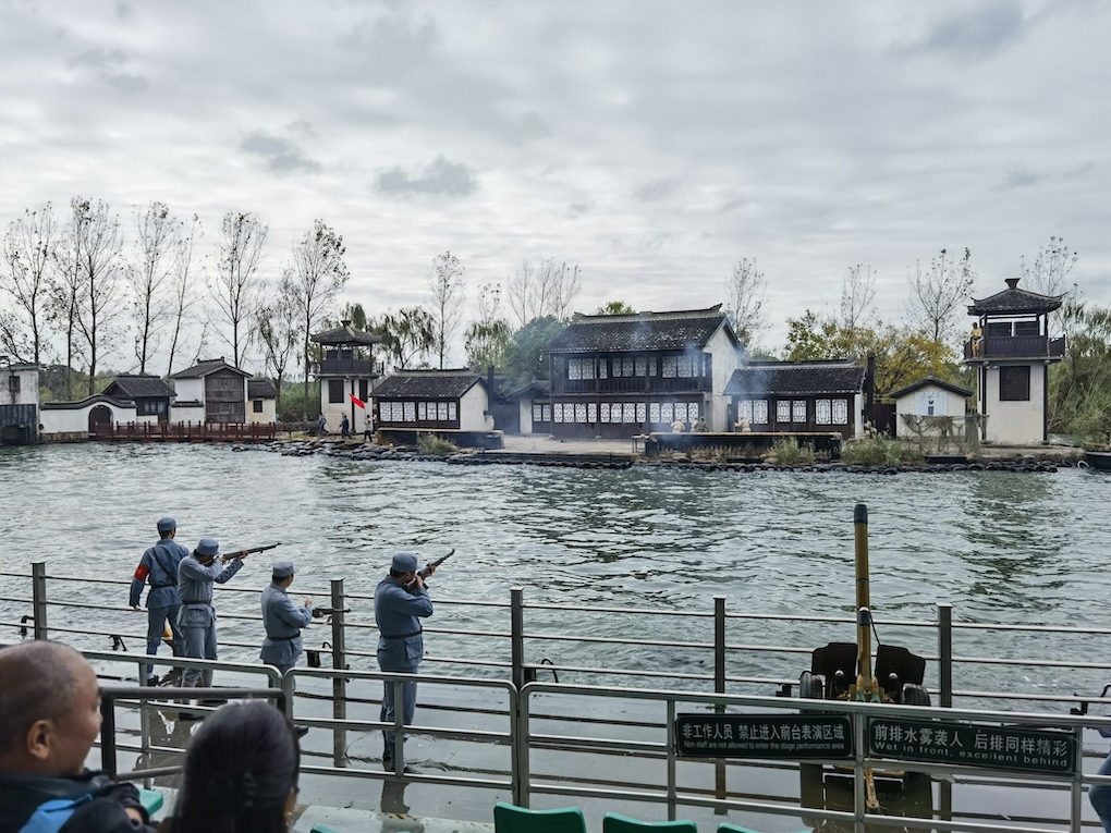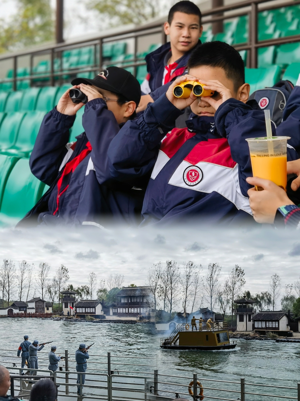 沙家浜军事基地有许多飞机模型,一比一还原真实大小,我们见到了许多意气风发的“兵哥哥”呢!这里是曾经抗日战争的根据地,这里还有一位厉害的抗日女英雄——阿庆嫂。阿庆嫂原本是一位普通老百姓,她从小就生活在沙家浜,长大后,就成为了一名茶馆女老板,自从抗日战争全面打响,阿庆嫂就帮助新四军照顾伤员,掩护他们撤离,与常来捣乱的日本鬼子和汉奸斗智斗勇。演出也十分好看,再现打仗场景时,火花四起,枪声震天,许多同学都十分害怕,看看这情景,不禁想象:当年的日本军队可要比这残酷百倍!中国人民苦不堪言,而正是有一群和阿庆嫂一样的革命战士们挺身而出,才让中国如今繁荣昌盛,希望大家都可以永远铭记阿庆嫂!