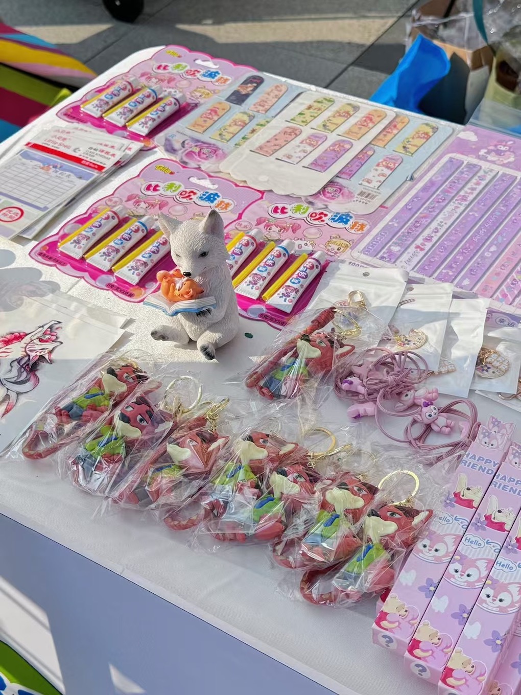 为了给孩子们带来更丰富的体验,家委会妈妈们特别定制了一批以狐狸爸爸为主题的实用文具。这些文具设计精美,兼具实用性与趣味性,有印着狐狸爸爸形象的笔记本、带有书中角色图案的铅笔和橡皮,还有小巧玲珑的狐狸尾巴形状的书签等。孩子们拿到这些文具时,爱不释手,立刻就感受到了浓浓的阅读氛围。