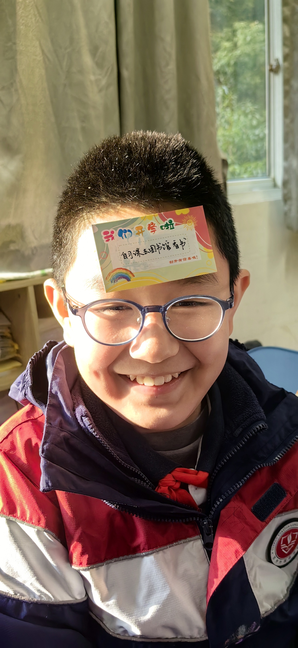 教室里顿时炸开了锅,接着同学们都兴奋地抽取了自己的幸运卡。有的抽到“免作业一次”,有的同学抽到“与最爱的老师合影一张”,还有的同学获得一次“当班长一天”的奖项……小关是个活泼好动的女孩,剪着一头短发,脸上总是挂着调皮的笑容。轮到她抽奖时,小关“噌”地站起来,三步并作两步跑到讲台前,小手在黑板上挑选了半天,终于选了一张粉色的刮刮卡。
