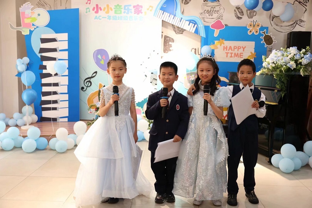 “音乐是心灵的翅膀,歌声是青春的绽放。让我们用音符编织梦想,用旋律点燃激情。”4月28日上午,随着四位小主持人款款走上舞台并深情朗诵开场白,AC一(1)班“小小音乐家”班级音乐会演出正式拉开帷幕。