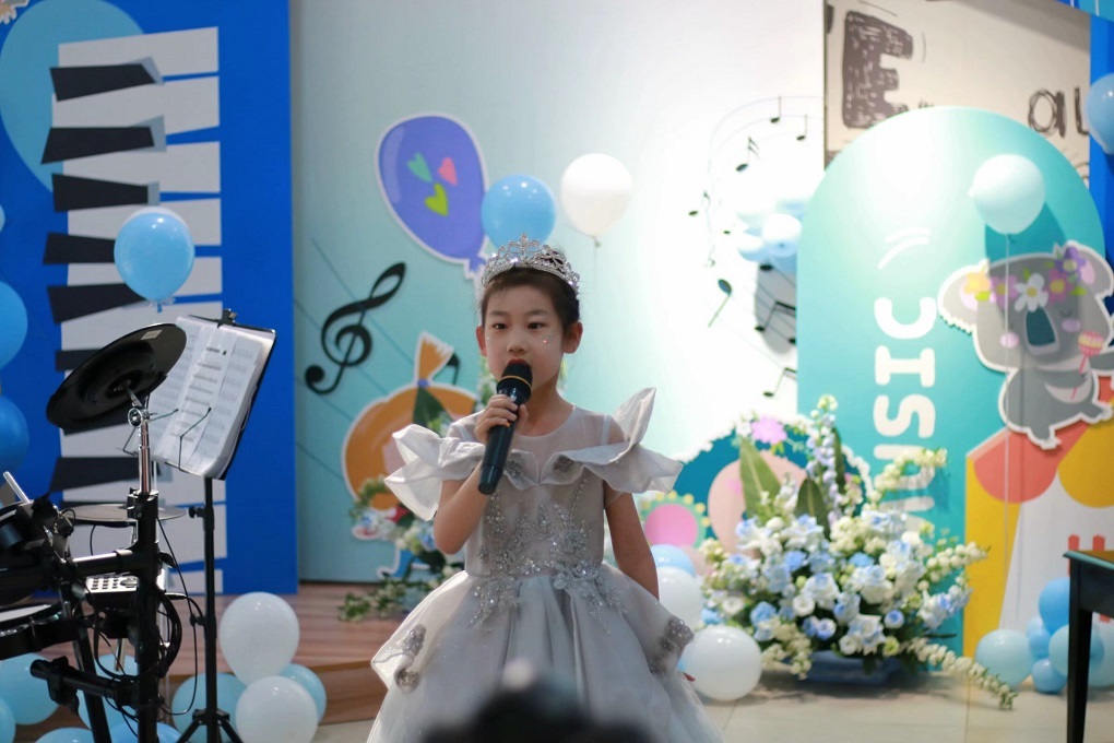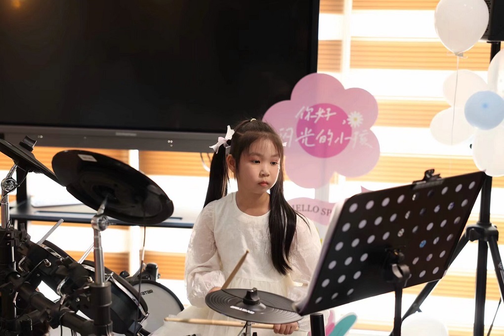 孩子们积极踊跃报名,共有十七个节目,包括歌唱、钢琴、舞蹈、吉他、小提琴、架子鼓、小合唱等,节目形式多样,异彩纷呈,给每一个孩子都提供了登台展示才艺的机会。舞台上,孩子们自信、活泼、阳光,多才多艺,富有表现力。欢快的歌声与悠扬的乐器演奏声在苏外的“美好时光”里飘荡。观众席上,家长们全神贯注,用心欣赏,每个人的脸上都洋溢着欣慰与自豪,不时为孩子们送上掌声和鲜花。很多节目都给大家留下深刻印象,姚若昕同学在歌词中唱道“东方的一束光,把黎明点亮,也把未来点亮”,她用歌声唱响未来,表达着对未来的美好期待,对音乐的热爱。于诗娴同学的孔雀舞舞姿优美灵动,惊艳四座。黄梓涵同学的架子鼓铿锵有力,乐声雷动。同学们用不同的形式表达了对音乐的热爱,对艺术的追求。