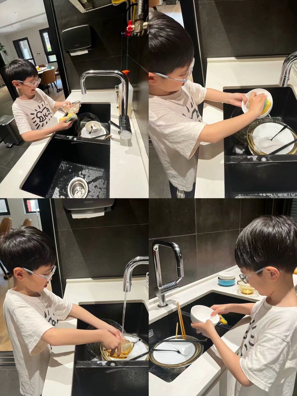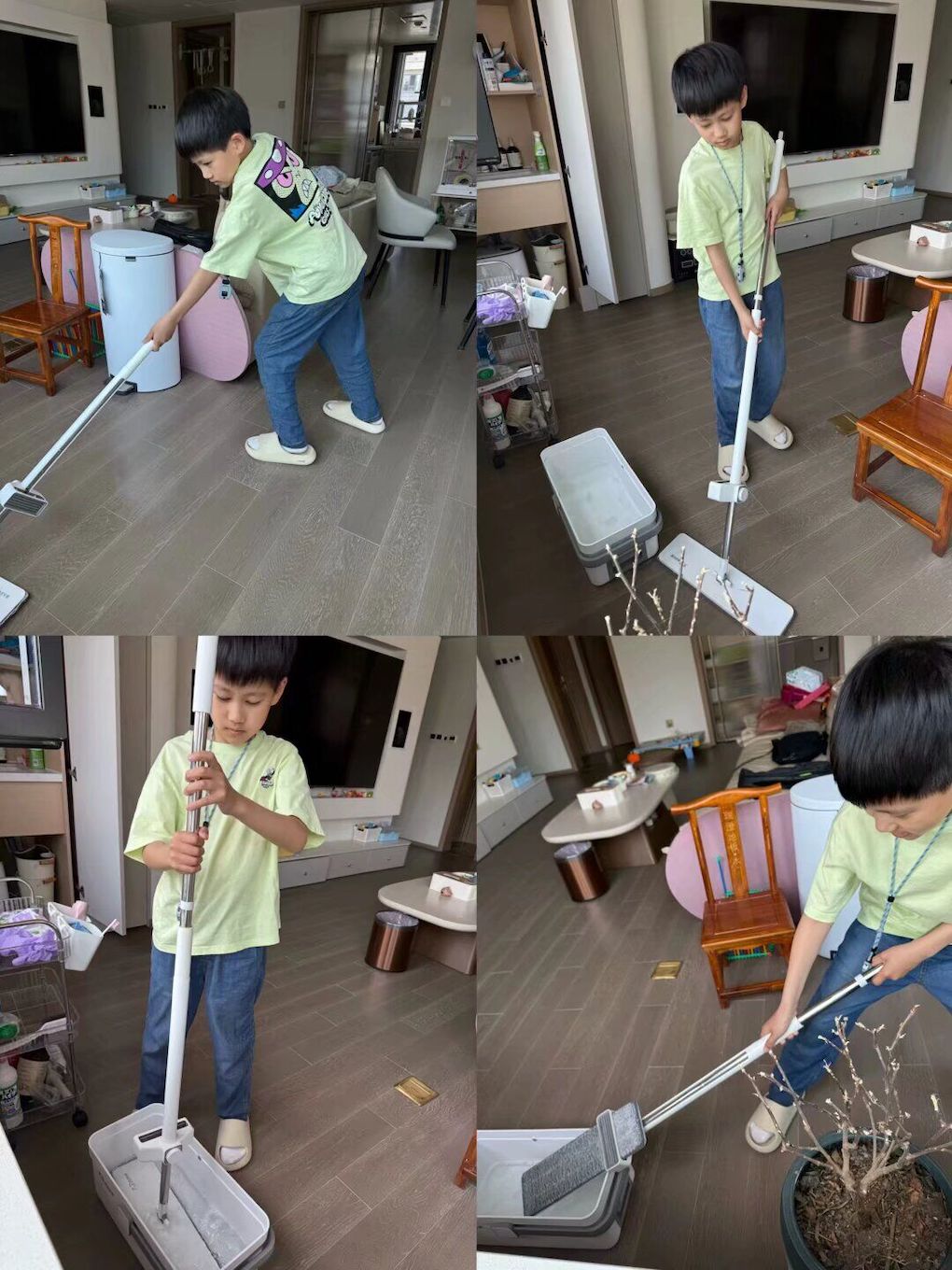 假期中,同学们积极投身劳动实践。有的同学拿起扫帚认真扫地,从房间的角落到客厅的每一处缝隙,都清扫得干干净净;有的同学费力地拖着沉重的拖把,使地板焕发出光亮;还有同学系上围裙,走进厨房,尝试洗碗、做饭。每位同学都在自己力所能及的劳动中收获满满。