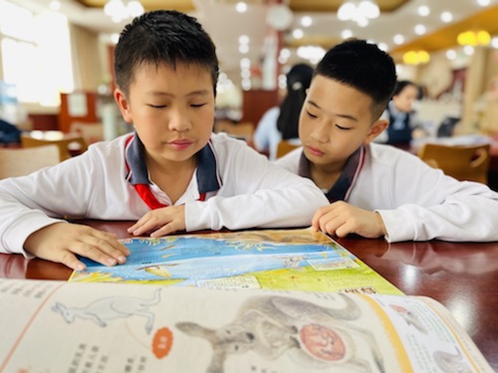 当阅读课的铃声响起,学生们便迫不及待地走进学校图书馆。图书馆内窗明几净,一排排书架整齐排列,各类书籍琳琅满目。孩子们穿梭其间,或是踮脚挑选心仪的书籍,或是静静坐在角落,翻开书页,瞬间沉浸在文字的世界里。有的同学被精彩的故事吸引,时而眉头紧锁,时而会心微笑;有的则专注于科普读物,认真汲取知识的养分;还有的轻声交流读书心得,分享着阅读的快乐。