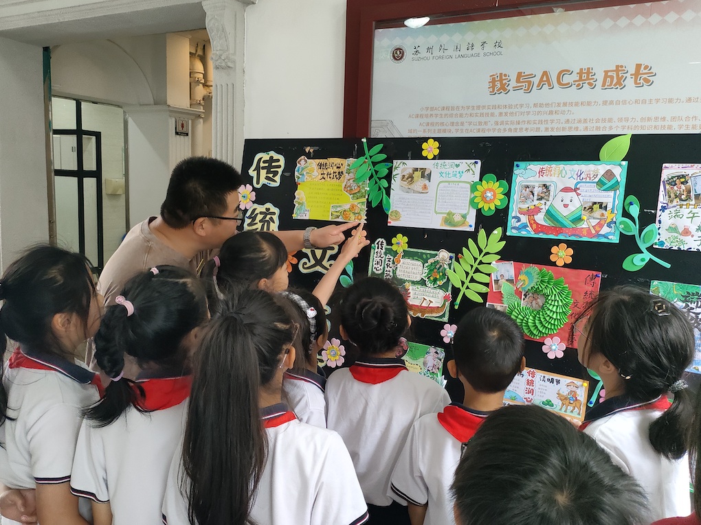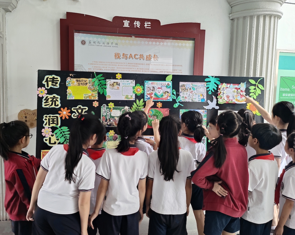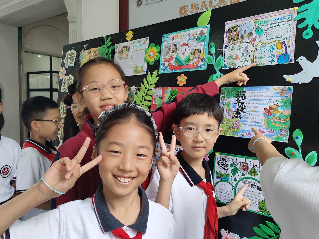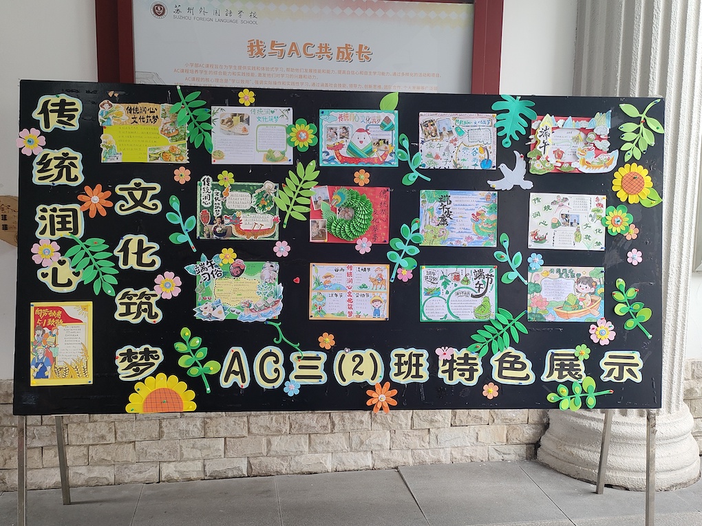 为弘扬中华优秀传统文化,增强学生文化自信,近期,苏州外国语学校AC三2班开展了清明、谷雨、劳动节、端午节系列传统文化特色活动。近日,孩子们以这些活动为灵感,精心制作了图文并茂的主题小报,并布置在校园展板上,为校园增添了浓厚的文化气息。