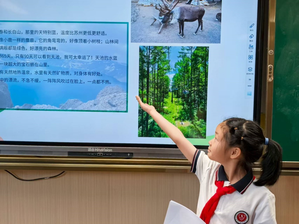 有的同学走进了大自然的课堂,分享了和家人一起登山观海、草原驰骋的壮阔景象。他们描述着清澈见底的小溪、夜晚闪烁的繁星,让全班同学仿佛也置身于那片美景之中。