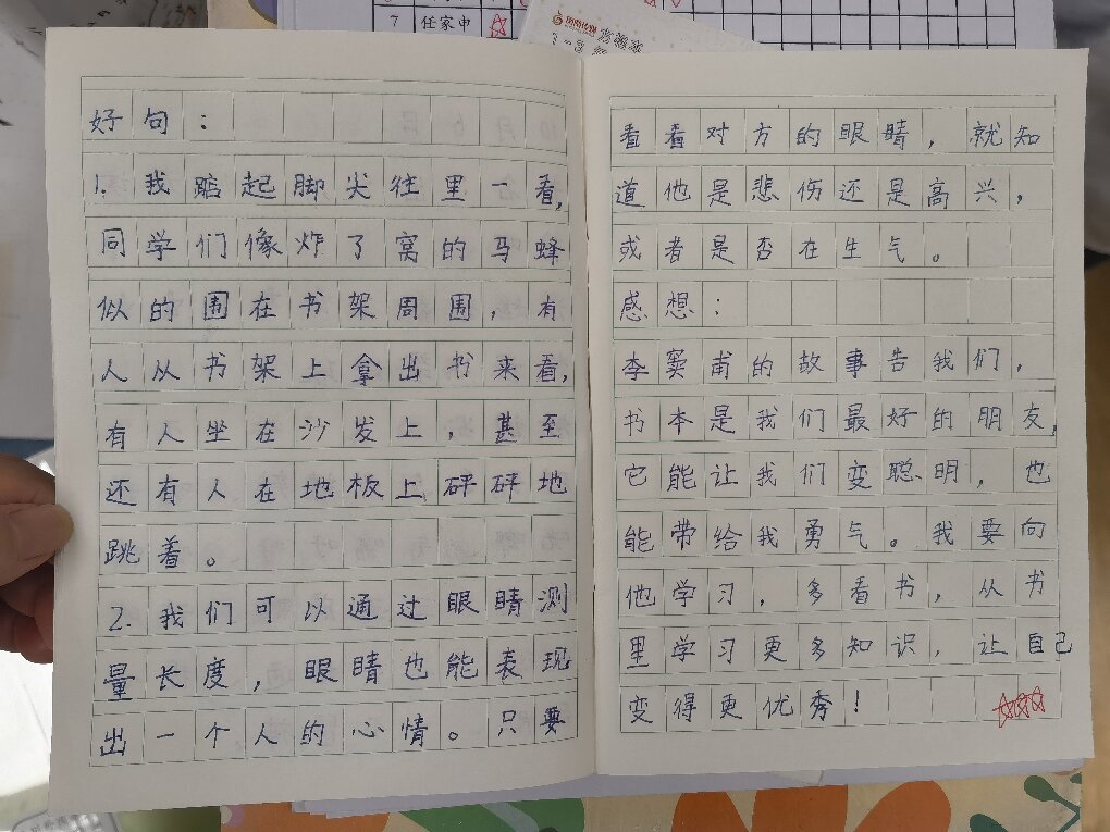 翻开一本本摘记,仿佛走进了孩子们丰富多彩的内心世界。工整抄录的好词好句,是语言素材的宝库,孩子们用稚嫩却真诚的笔触,记录下与书中人物同喜同悲的情感体验,以及对生活、对成长的思考。从“我明白了坚持就是胜利”到“原来历史背后有这么多故事”,每一篇摘记都是思考的结晶,是阅读留下的最扎实的脚印。老师会定期组织“摘记秀”和“心得分享会”,让优秀的思考被看见,让深度的阅读成为一种风尚。