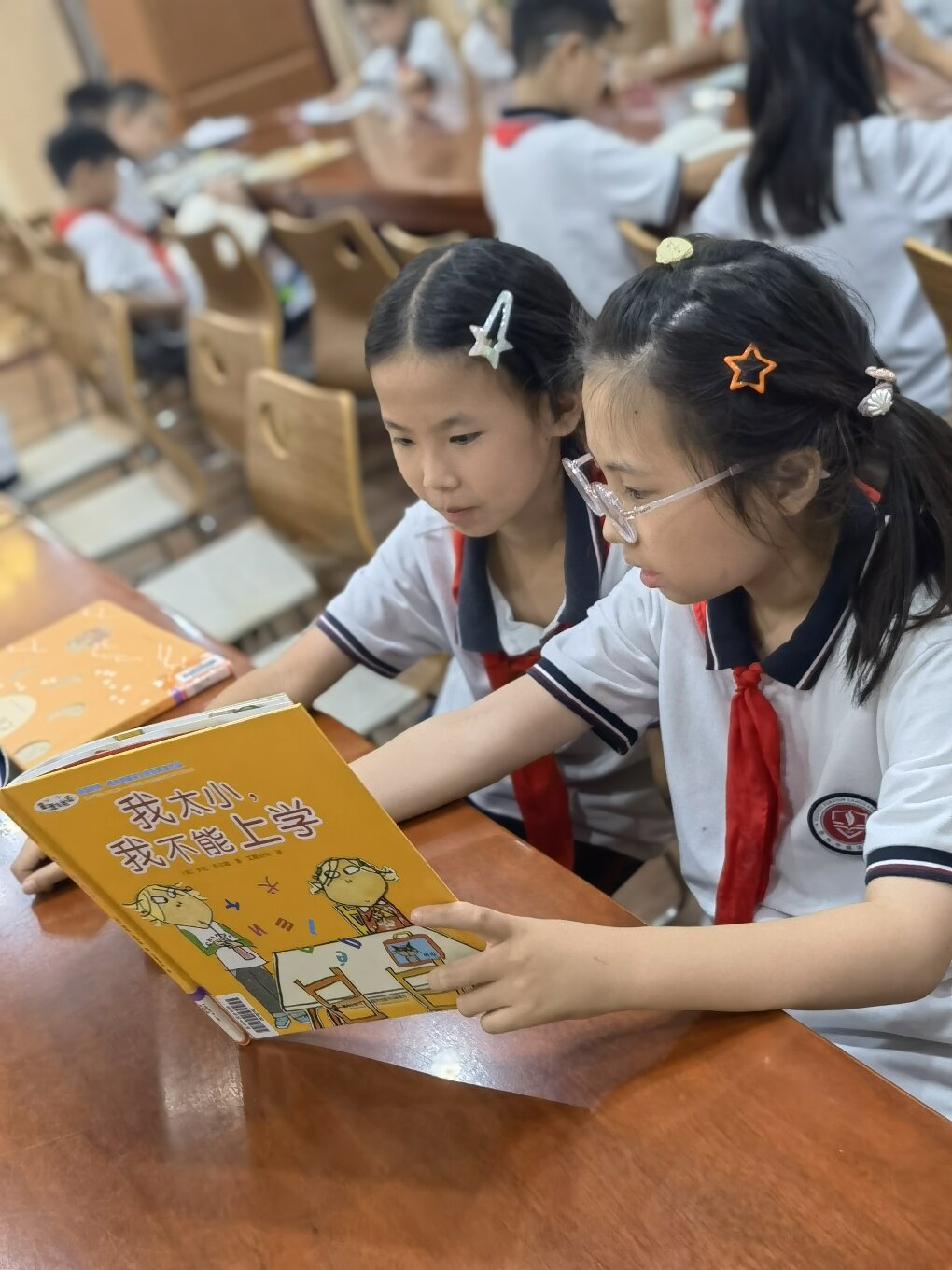 在窗明几净的环境中,孩子们如同寻宝一般,在书架间穿梭,挑选自己心仪的书籍。有的沉醉于《西游记》的神魔世界,有的在《昆虫记》里探索自然的奥秘,还有的随着《草房子》回味纯真年代的悲喜。他们或凝神细读,或托腮沉思,或偶尔与邻座同学低声交换一个会心的眼神。还有同学拿出钢笔,记录下精彩的词句。笔尖划过纸张的沙沙声,书页翻动的清脆声,共同谱写成一首最动人的自习曲。这方寸之间的阅览室,为孩子们打开了一扇通往广阔天地的大门,让他们在静默的阅读中,完成与智者的对话,涵养内心的沉静与力量。