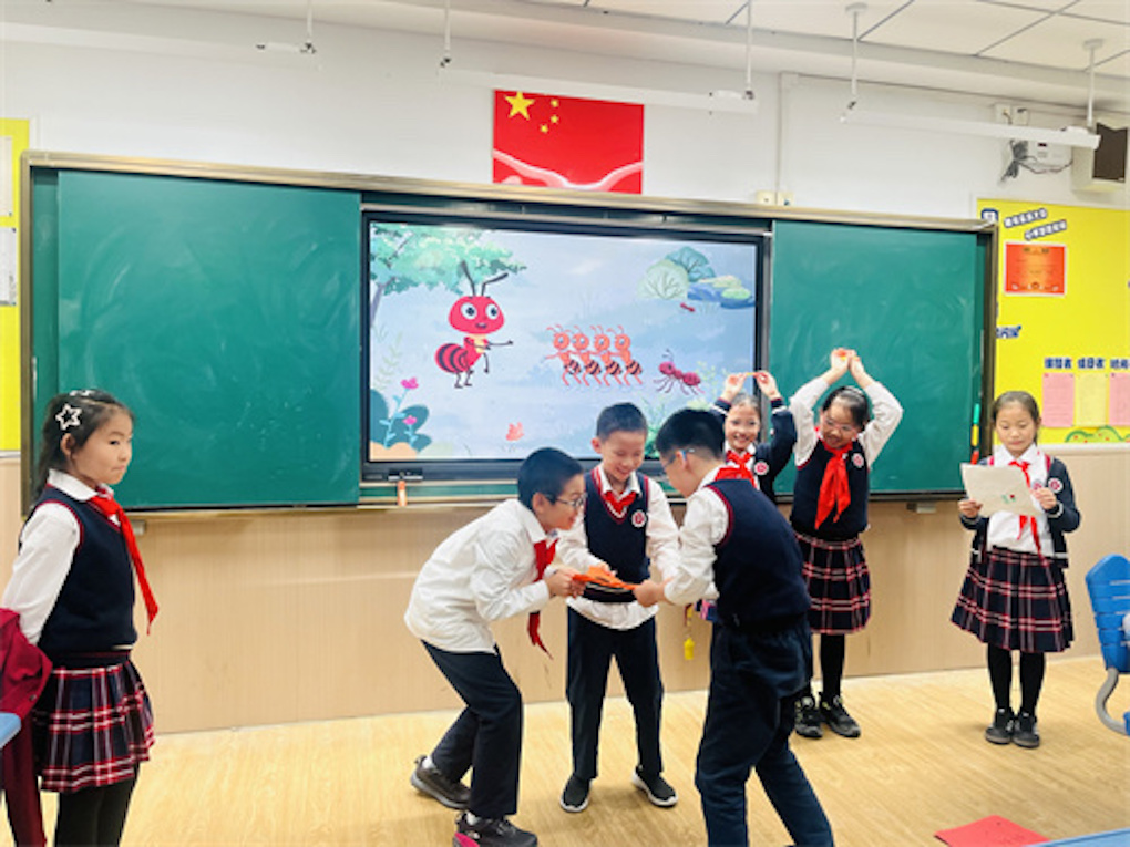 第二组演绎的《一块奶酪》,蚂蚁队长面对诱惑时的内心挣扎与最终坚守原则的果断,被小演员们刻画得入木三分,让同学们深刻体会到“纪律面前,人人平等”的深刻内涵。