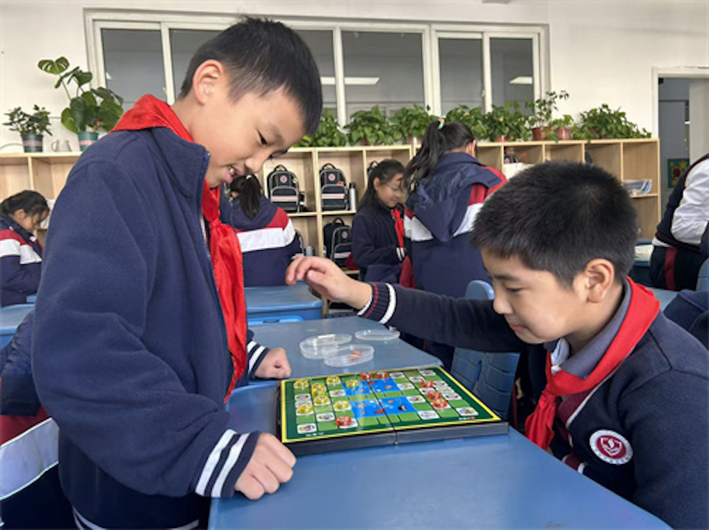 教室角落,斗兽棋“智囊团”每天午休都会“开战”。孩子们一边背着“象>狮>虎>豹>狼>狗>猫>鼠,鼠却能钻河吃象!”的规则,一边秒变“军师”。上课铃响了,他们还不肯收子,直呼“再来一局”。