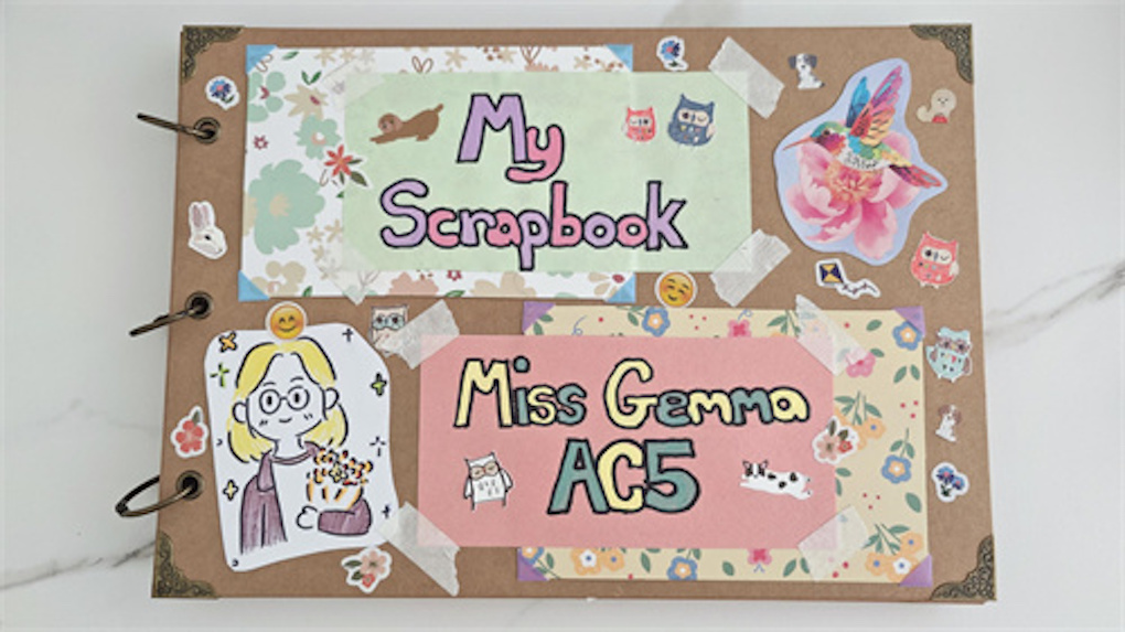 “Make a scrapbook that can speak for you!” Miss Gemma递来胶枪、彩纸和圆珠笔。我先把封面卡纸折成册,再用英文写下Name、Age、Phone number,画满小星星。胶枪“咝咝”作响,彩笔“沙沙”伴奏,一本“独家scrapbook”诞生。展示环节,我们只能用英语介绍,结巴也好,流利也罢,Miss Gemma都竖起大拇指:“Good job!”