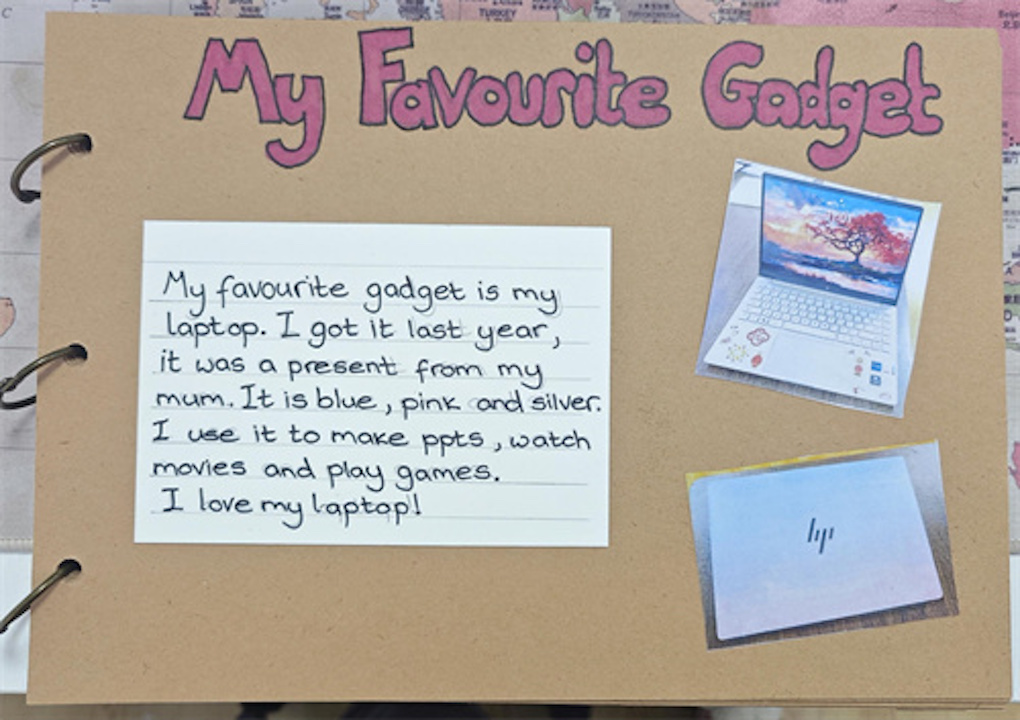 开学第二周,Miss Gemma抱着一叠空白卡纸走进教室。“Use English to introduce your talent!”她一声令下,彩纸、贴纸、干花、照片瞬间起飞。有人写下“I can play guitar”,有人拼出“My basketball dream”,还有人把自画像贴在正中央。最后,我们用英语轮流展示,一块“All About Me”展板把新学期的自信和词汇量一起放大。这些丰富的个人名片,至今贴在班里的英语角上,这不仅给我们班添加美丽,也展示出我们班同学们的多才多艺。