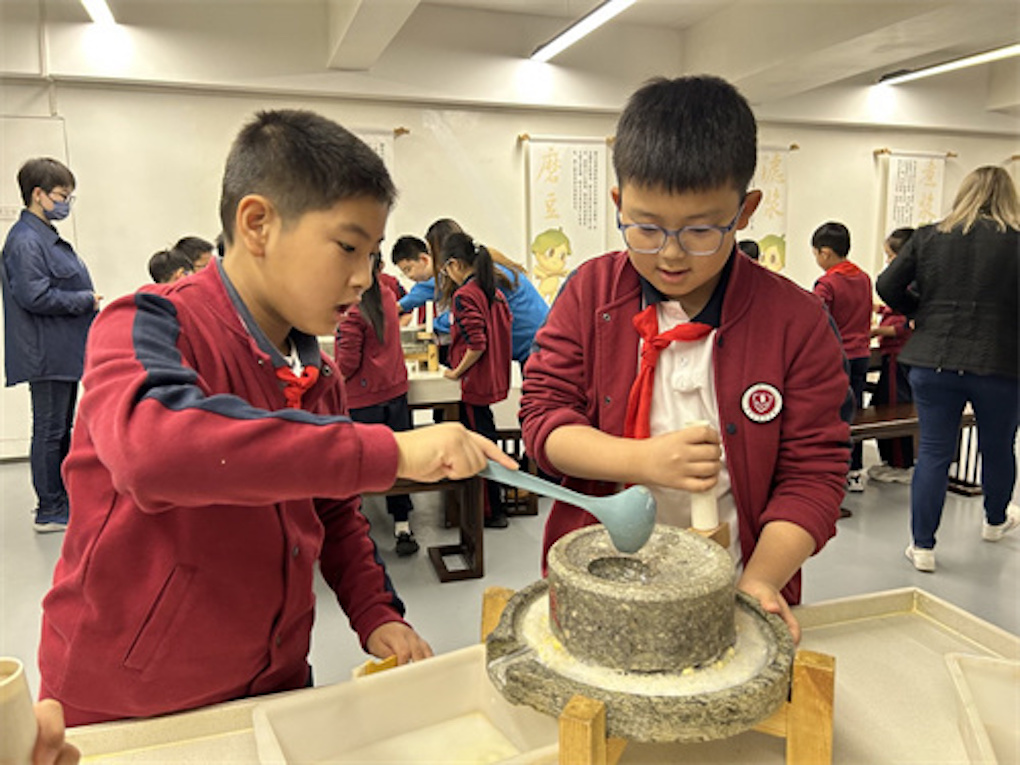 社会实践日,校车把我们送到“老相食”Tofu Factory。Miss Gemma提前发好“Task Sheet”:grind、heat、coagulate、press……我们一边看工人操作,一边用英文记录步骤。最激动人心的时刻是揭开压盖——豆皮像丝绸一样被轻轻揭起。“Who wants to have a taste?”Miss Gemma眨眨眼,我们齐喊“I do!”热腾腾的豆香里,词汇表上的“solid-liquid transformation”突然有了味道。