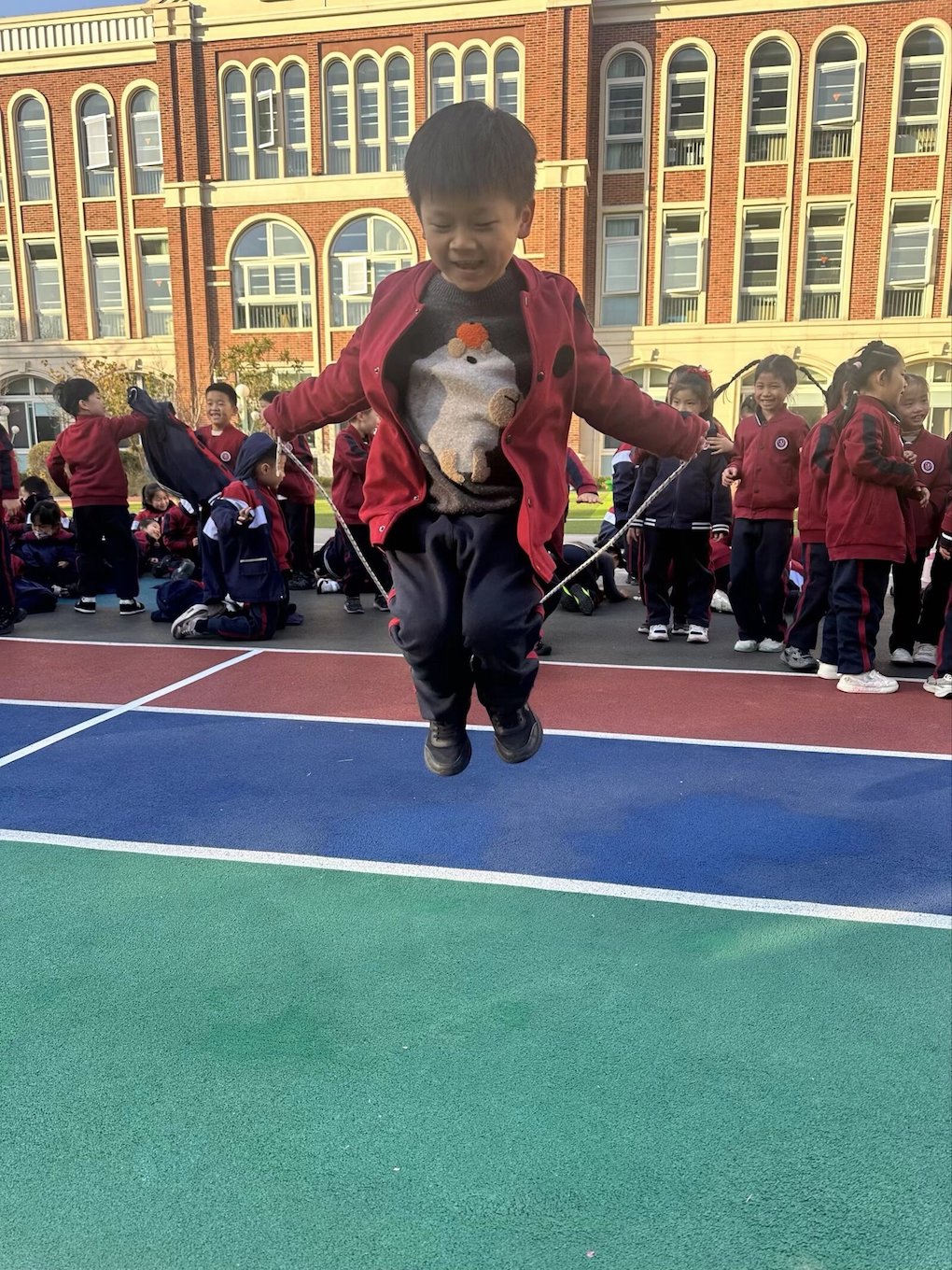 跳绳区里,彩色绳子在空中划出一道道优美的弧线。“预备——开始!”随着老师一声令下,孩子们手中的绳子迅速飞舞起来。起初的节奏还有些不协调,几个孩子不小心绊到了绳子,但他们没有停下,捡起绳子继续跳动。