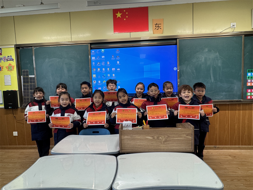比赛中,同学们全神贯注,熟练运用音序、部首查字法解题,笔尖在试卷上快速书写,展现出扎实的语文积累。赛后经严谨评卷,最终评选出一等奖2名、二等奖4名、三等奖6名。黄沐泽、窦云渺同学斩获一等奖,陈牟璐等4名同学获二等奖,李宗羽等6名同学获三等奖。获奖同学手持奖状合影留念,脸上洋溢着自豪的笑容。