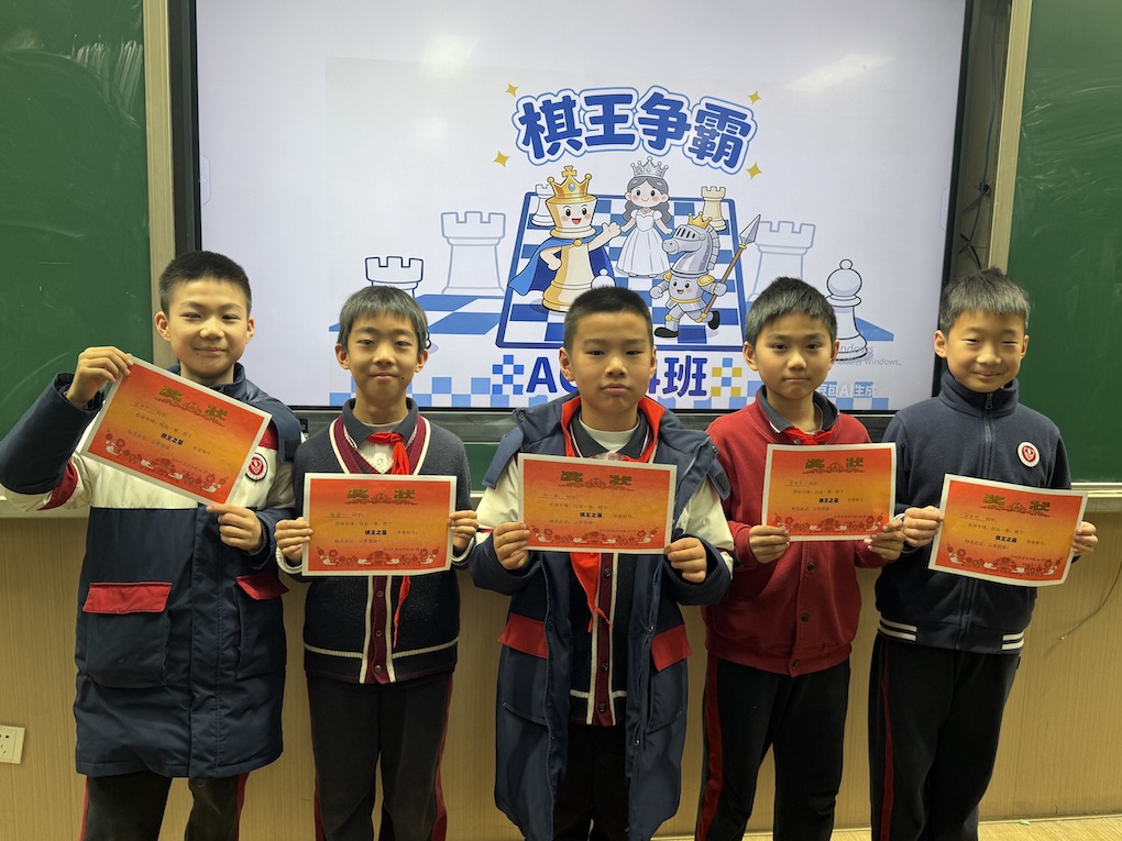 以棋为媒,以智会友。作为 “棋思妙想社——国际象棋” 特色班,AC四4班于2026年1月16日前后开展了一场精彩绝伦的班国际象棋棋王争霸赛。全班同学踊跃参与,在方寸棋盘间展开同班学子的智慧交锋,经过多轮紧张激烈的比拼,最终 5 名同学摘得 “棋王之星” 桂冠,5 名同学获评 “棋艺能手”,9 名同学斩获 “弈棋新星” 称号,让黑白棋子在班级氛围中绽放出别样的成长光彩。