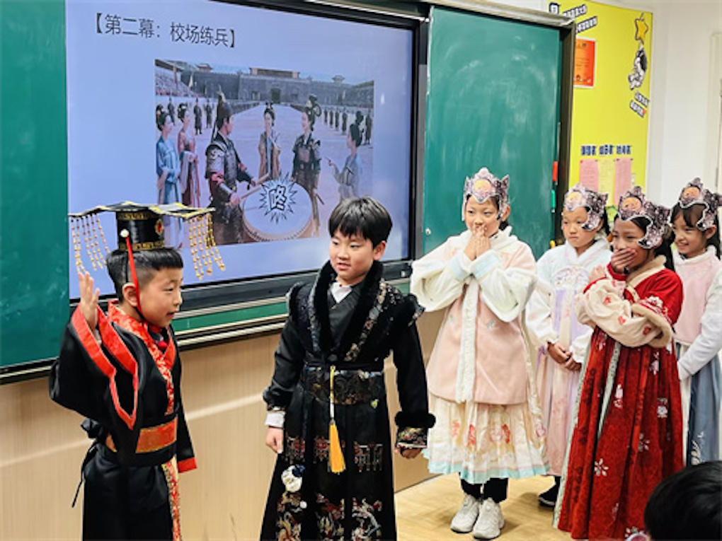 经过三周的精心排练,同学们在家长会上进行了精彩展演。舞台上,“孙武练兵”展现了严明治军的智慧;“卧薪尝胆”传递了坚韧不拔的精神;“干将莫邪”演绎了工匠精神的传承;“范仲演建义庄”再现了一代贤臣胸怀天下的广阔胸襟;“白居易修山塘街”则体现了为民造福的担当。每个剧目都凝聚了同学们对历史的深刻理解和对家乡文化的真挚情感。