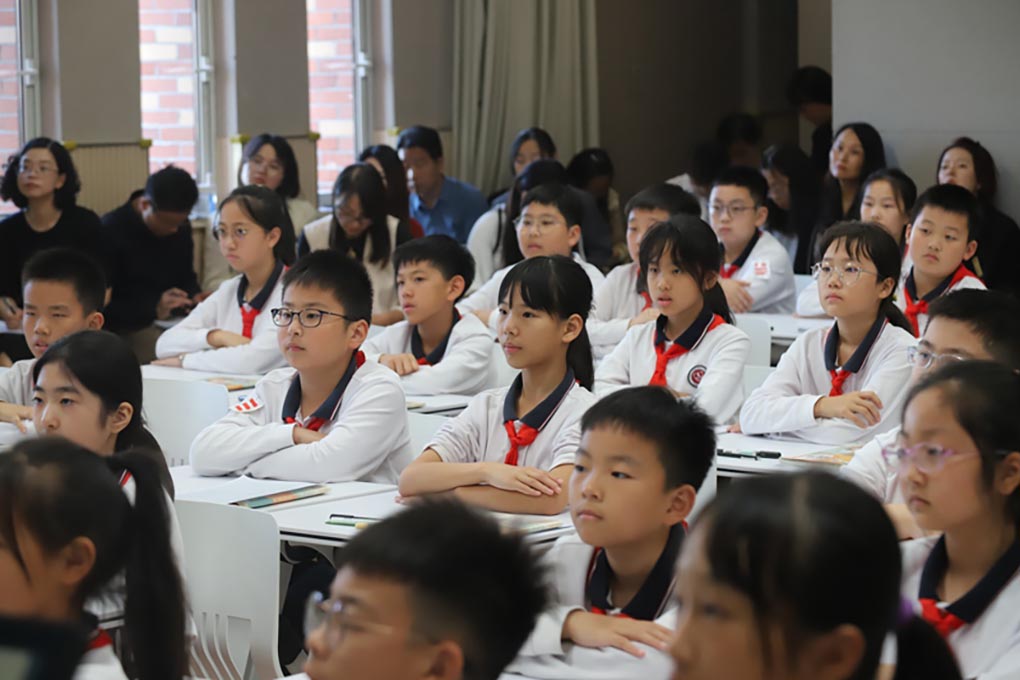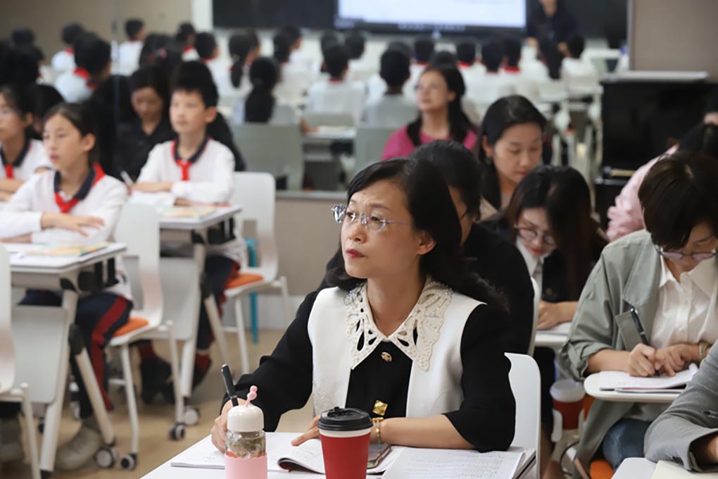 活动伊始,苏外小语组的领头人王园媛老师首先向听课老师们进行了一篇文质兼美的课文——《四季之美》的教学展示。王老师紧扣单元主题“四时景物皆成趣”,从词语之美、结构之美,到感受意境之美、映衬之美、色彩之美……层层深入,带领孩子在朗读与感悟中感受文字之美,领略四时之美。