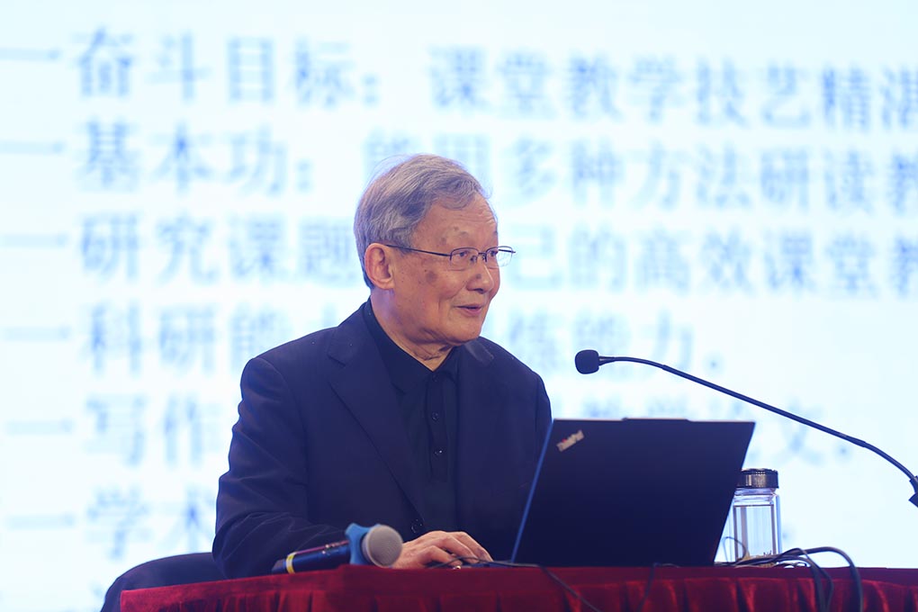 余映潮老师还为整体苏外语文人带来了“提升我们的课堂教学艺术的境界”讲座,他强调每位语文教师最重要的教学能力点是单元目标引领下的单篇课文的能力,如此一来,每篇课文都会有让人惊叹的教学魅力。