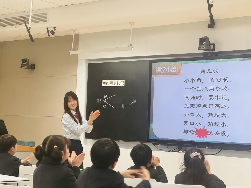 孔凡楚老师执教的《角的初步认识》,设置了三大活动,在活动中让低年级的孩子感知角、认识角,最后以角儿歌作为结尾强化记忆。学生在儿歌声中开开心心地下课,做到了快乐学习,学有所获。