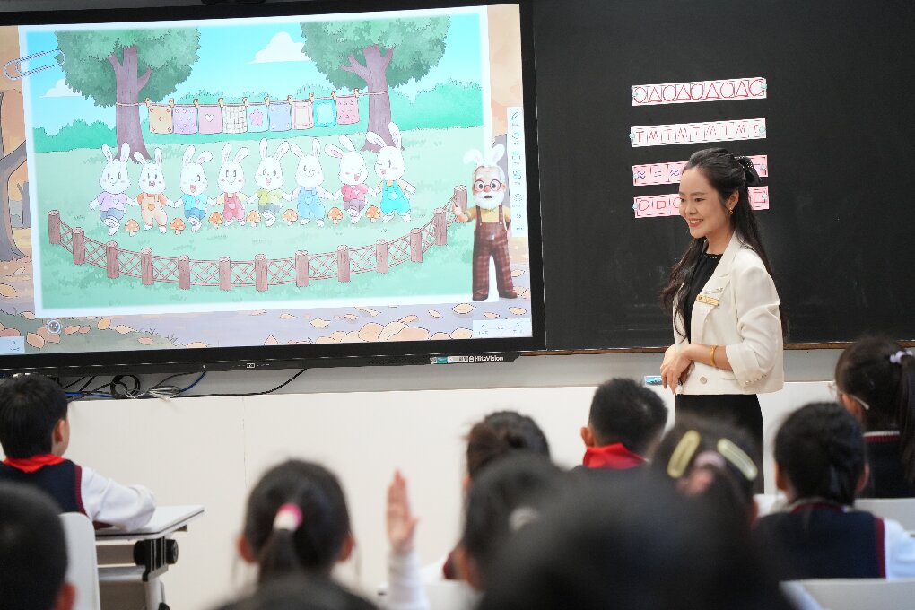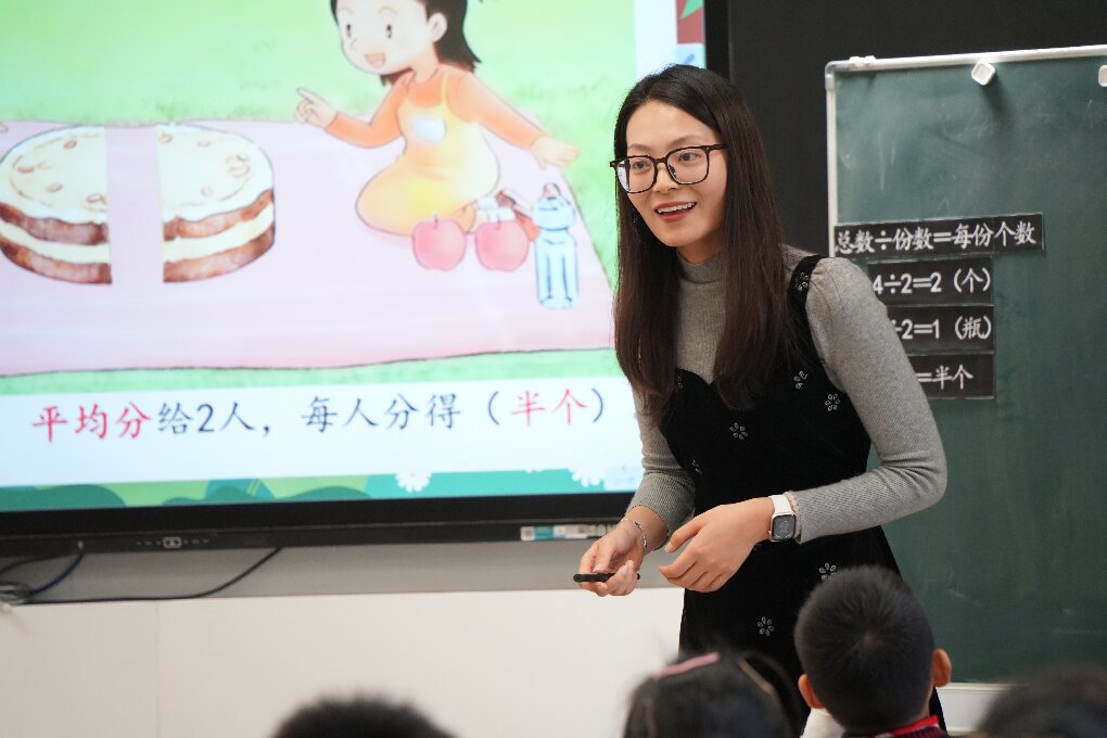 在智慧教室会场,三位教师带来了深度融合情境与知识的数学课堂。高新区实验小学卢静老师执教的《加法数量关系》,注重在真实的生活情境中引导学生理解加减法的内在联系,构建数学模型。苏州外国语学校黄莎莎老师带来的《间隔排列》,巧妙创设“兔子王国欢乐派对”的趣味情境,激发学生探究欲望,自主发现间隔排列的规律。科技城实验小学王巧雅老师执教的《认识分数》,则从历史中的数学智慧入手,通过一系列动手操作活动,帮助学生初步建立分数概念,感悟其实际意义。