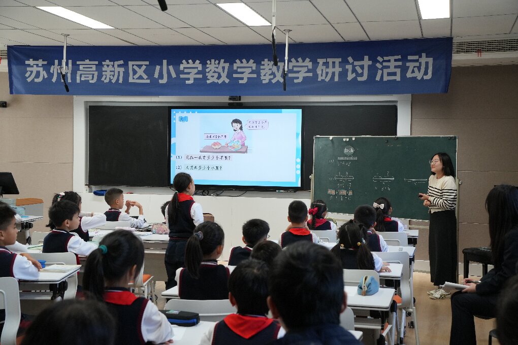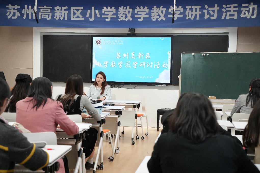 为深入推动新教材的有效使用,积极探索基于新课标理念的课堂教学实践路径,2025年10月29日下午,高新区小学数学教学研讨活动在苏州外国语学校顺利举行。本次活动紧密围绕新教材的落地实施,集结了全区小学数学教育的骨干力量,通过课堂观摩与专题研讨,共同探寻教学创新的策略与方法,为一线教师提供了宝贵的学习与交流平台。