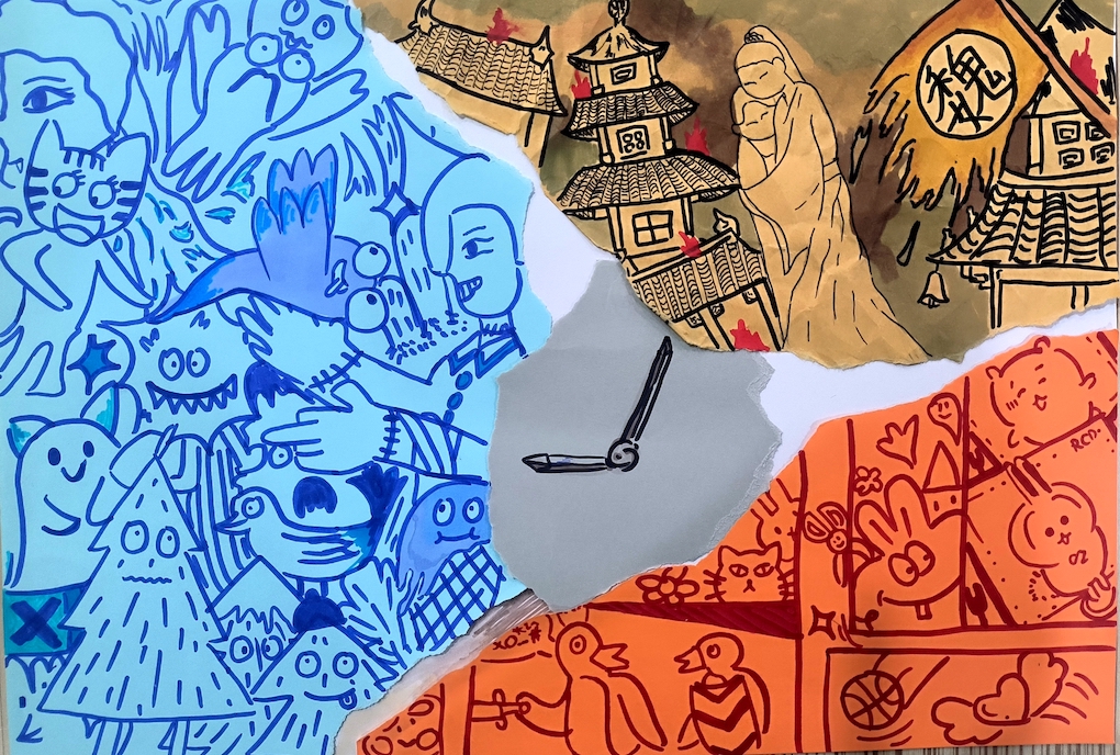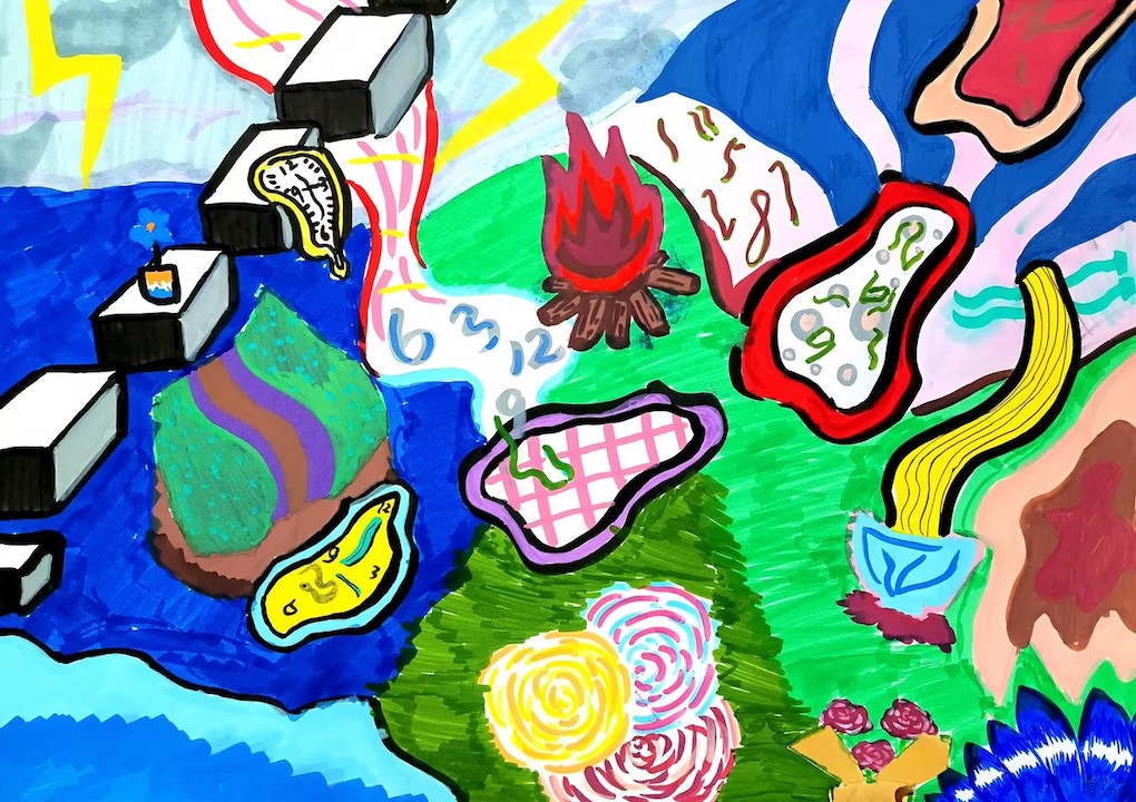 乌克兰插画师的创意构图与明快色彩,为学生的动物主题插画注入灵感,一幅幅妙趣横生的作品跃然纸上。草间弥生标志性的点元素,也与超现实风格碰撞融合,化作学生笔下爱丽丝梦境里的斑斓图景。