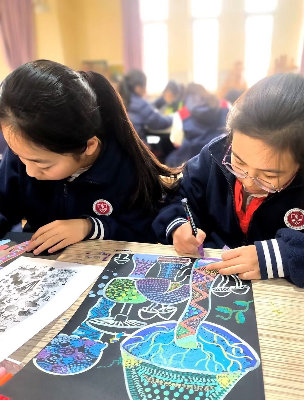 每周的兴趣组活动不仅提升了学生的绘画技能,更让他们在大师创意的滋养下,学会用独特的视角观察世界,让奇思妙想在画纸上绽放光彩。