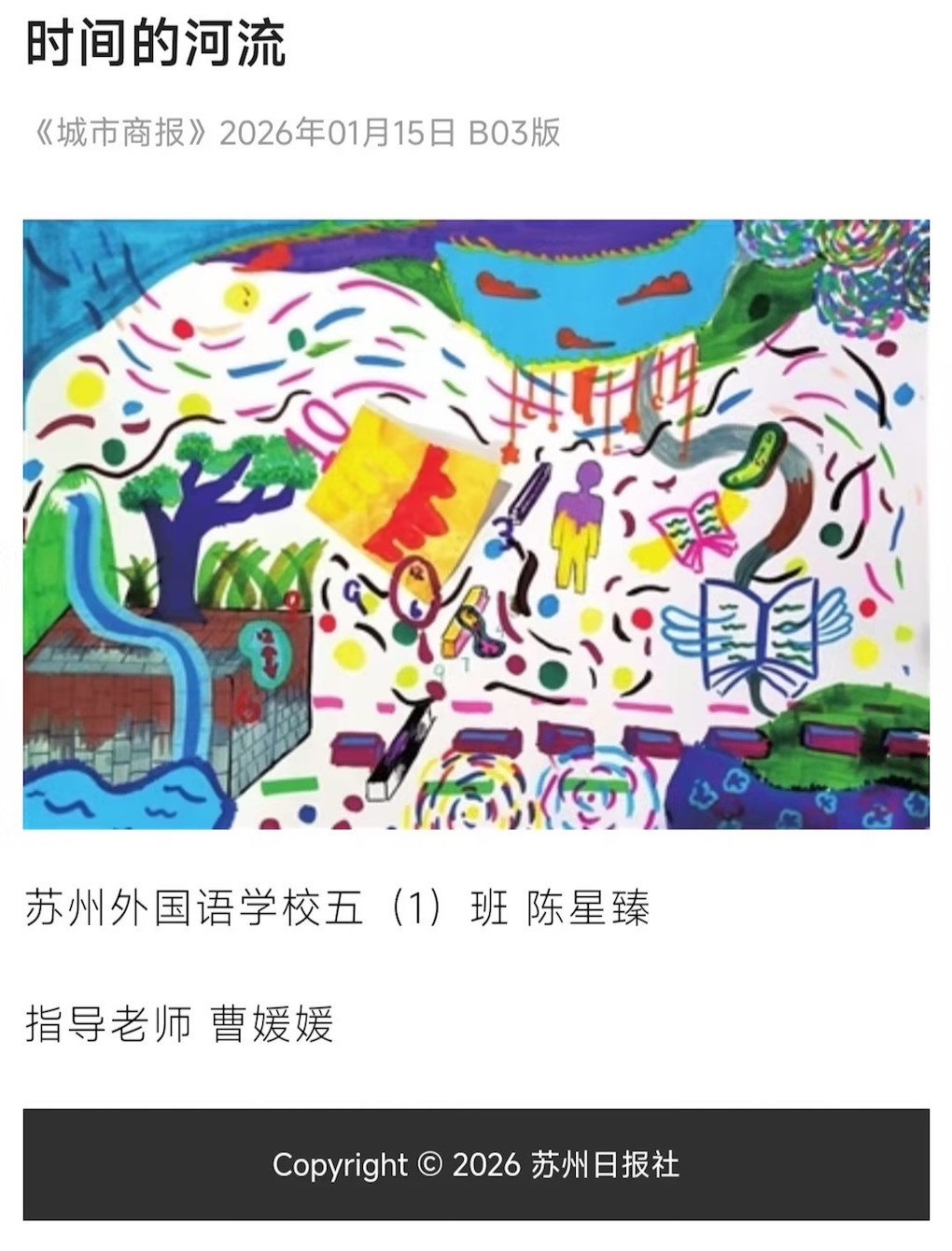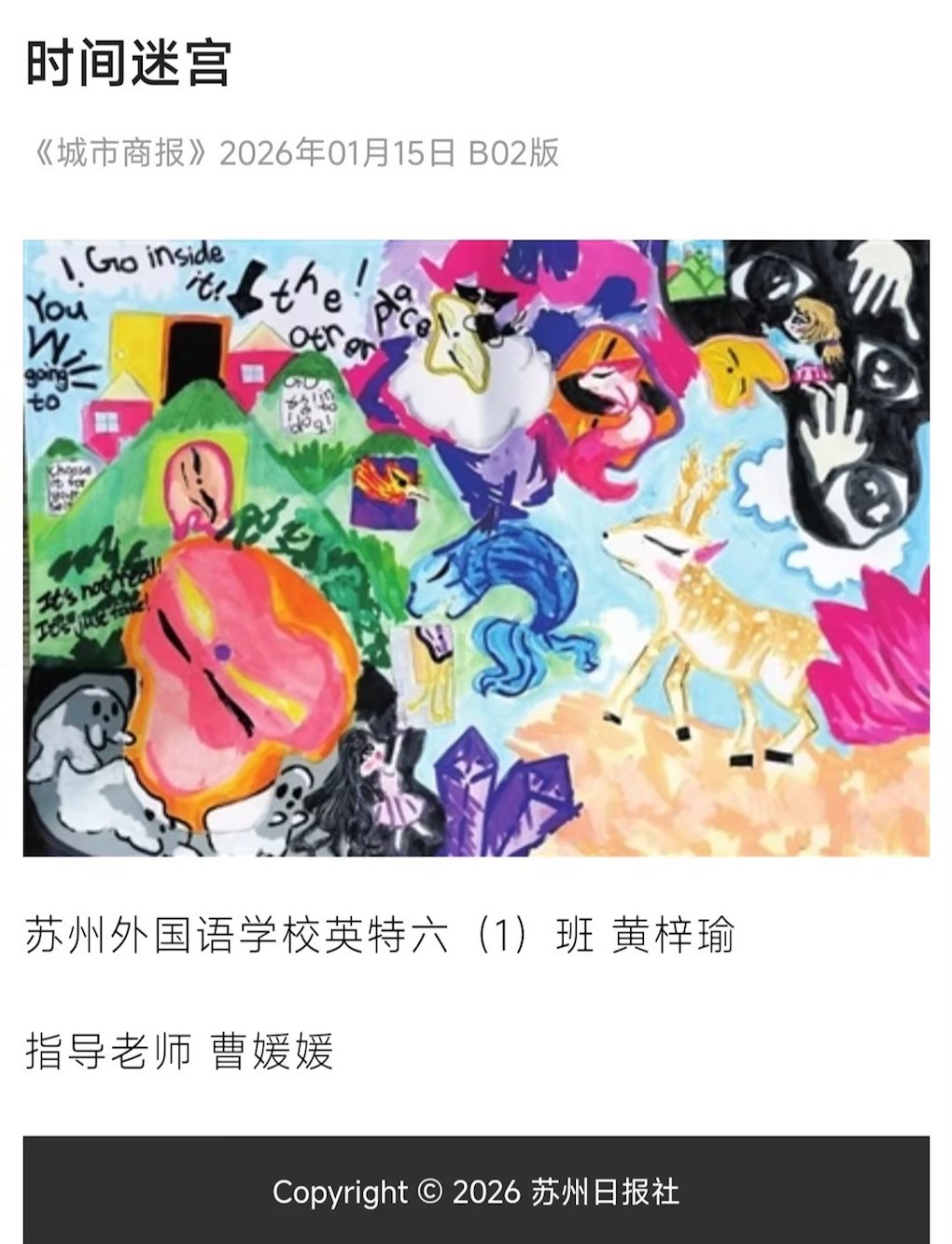 从技法学习到创意落地,从模仿借鉴到个性表达,学生们在每一次创作中探索艺术边界。她们创作的三幅作品发表于苏州《城市商报》。