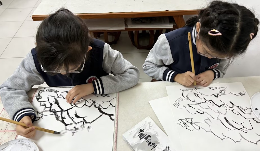 这学期,15 张稚嫩的脸庞组成了兴趣组的大家庭,他们都是三、四年级的孩子,绝大多数之前从未接触过国画,对毛笔、宣纸充满了好奇与些许忐忑。为了让孩子们能轻松迈过入门门槛,真正爱上这门传统艺术,指导老师顺着孩子们的认知节奏,量身打造了 8 节既好玩又有料的课程。创意国画与传统临摹穿插进行的教学方式,让孩子们在笔墨翻飞间,既学会了本领,又收获了满满的快乐与成长。