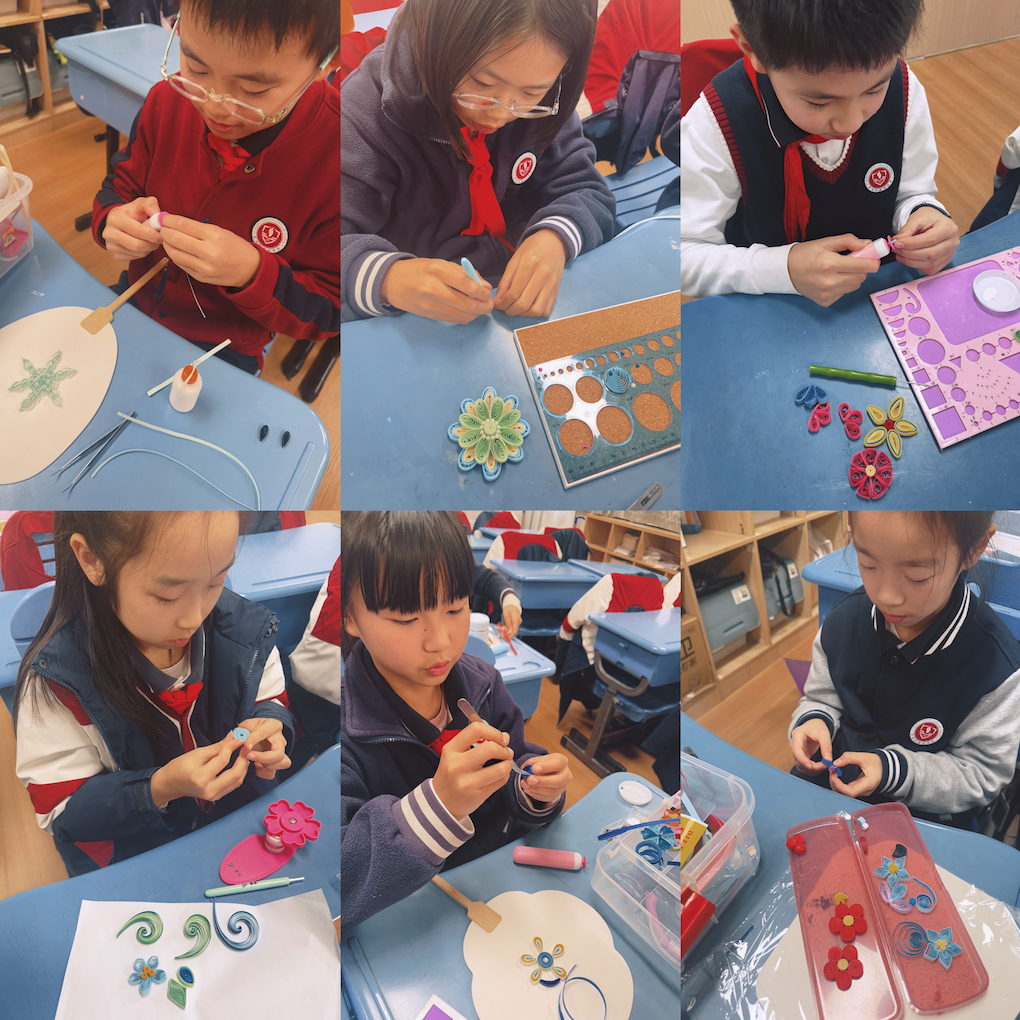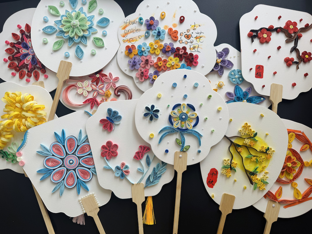 本学期以衍纸团扇为核心创作主题,大部分都是初次接触衍纸艺术的学生,通过系统教学与创意实践,让孩子们在一纸一卷的操作中感受手工艺术的独特魅力。