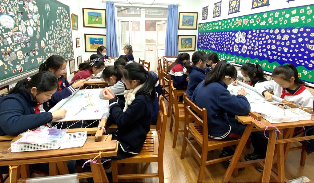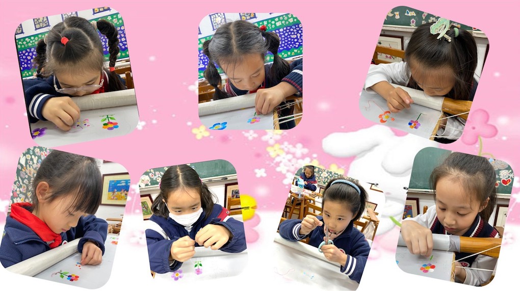 指尖捻丝,针随线走,一朵朵彩色小花在白色底布上渐次绽放,晕染开江南水乡独有的温婉气韵。本学期,我们依然面向低、中、高三个年段开设了“小小绣坊”刺绣兴趣组。以花为媒,以针为友,孩子们在一针一线的穿梭中,触摸非遗文化的温度,感受苏绣艺术的精妙。