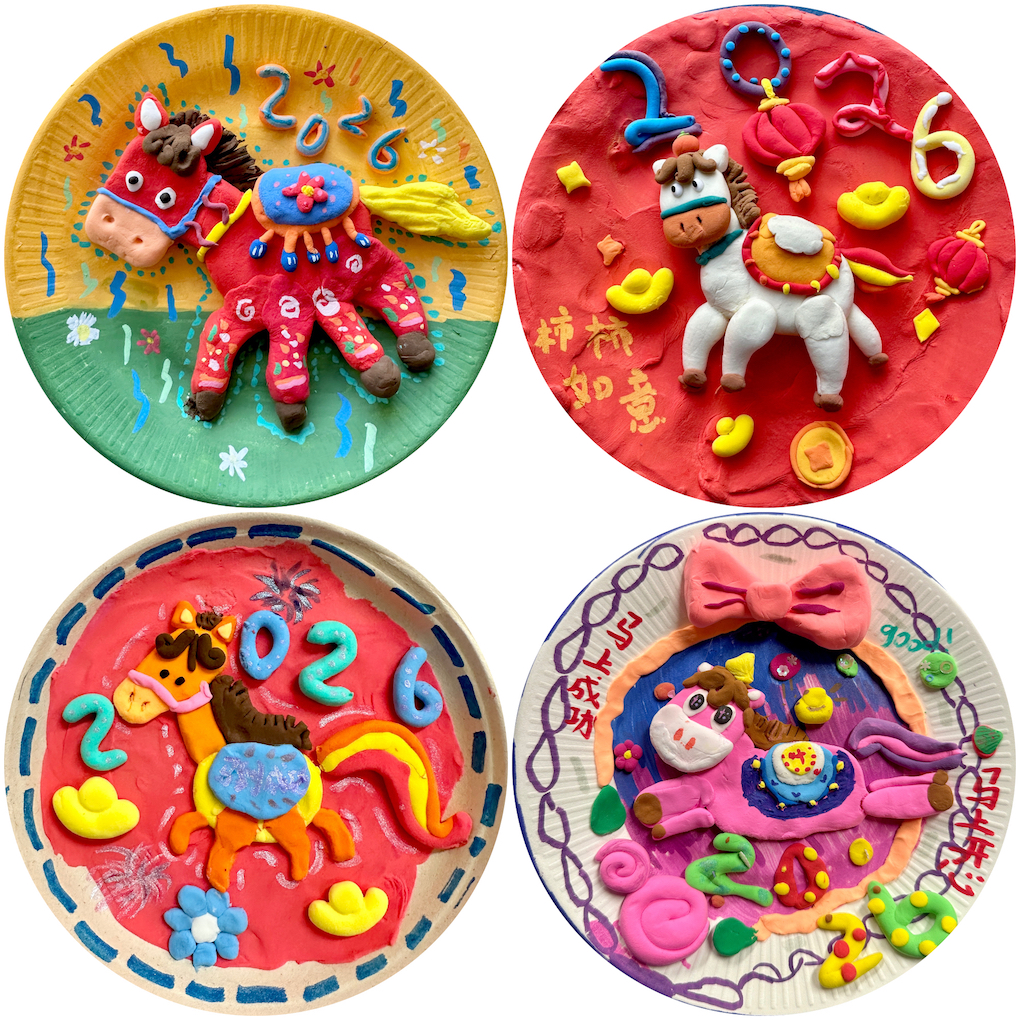 临近丙午马年,同学们围绕“吉祥马年”展开创意构思,将粘土技法与节日元素相结合,制作出形态各异的马年装饰画——有的塑造出奔腾向前的骏马形象,寓意“马到成功”;有的以卡通马为主体,搭配红灯笼、祥云等吉祥符号,传递新春祝福;还有的将马元素与校园生活结合,展现出独特的童真视角。这些充满节日氛围的作品,不仅展现了同学们的创作实力,更寄托了对新年的美好期盼。
