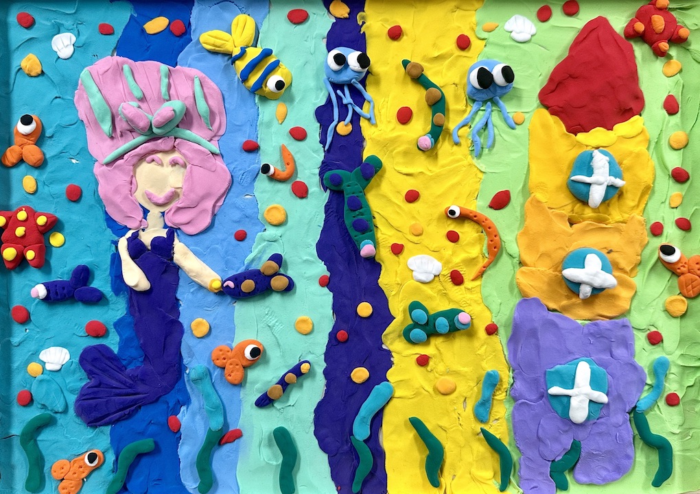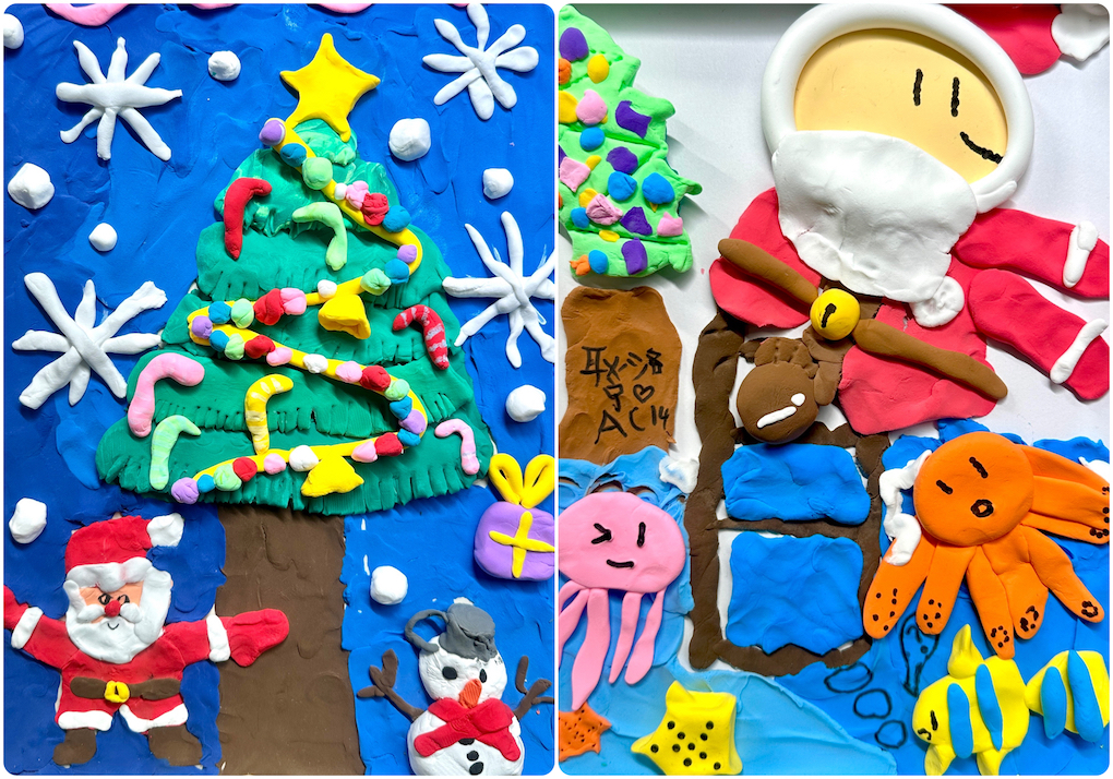 在基础造型创作熟练后,课程进一步升级为场景粘土与粘土画创作。同学们发挥团队协作精神,共同构思主题场景,将单个粘土形象融入故事背景,打造出“森林派对”“校园时光”“海底世界”等充满画面感的立体场景作品;而粘土画则打破了传统绘画的局限,同学们将粘土作为“颜料”,通过堆叠、塑形、拼接等方式,在画板上创作出生动立体的装饰画,让色彩与质感完美融合。