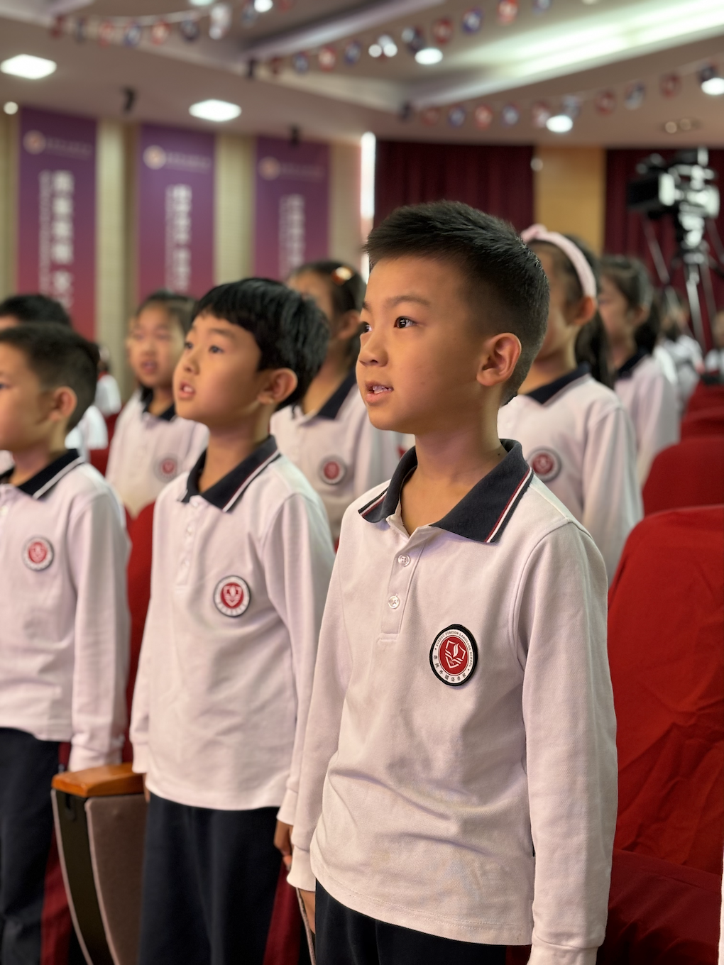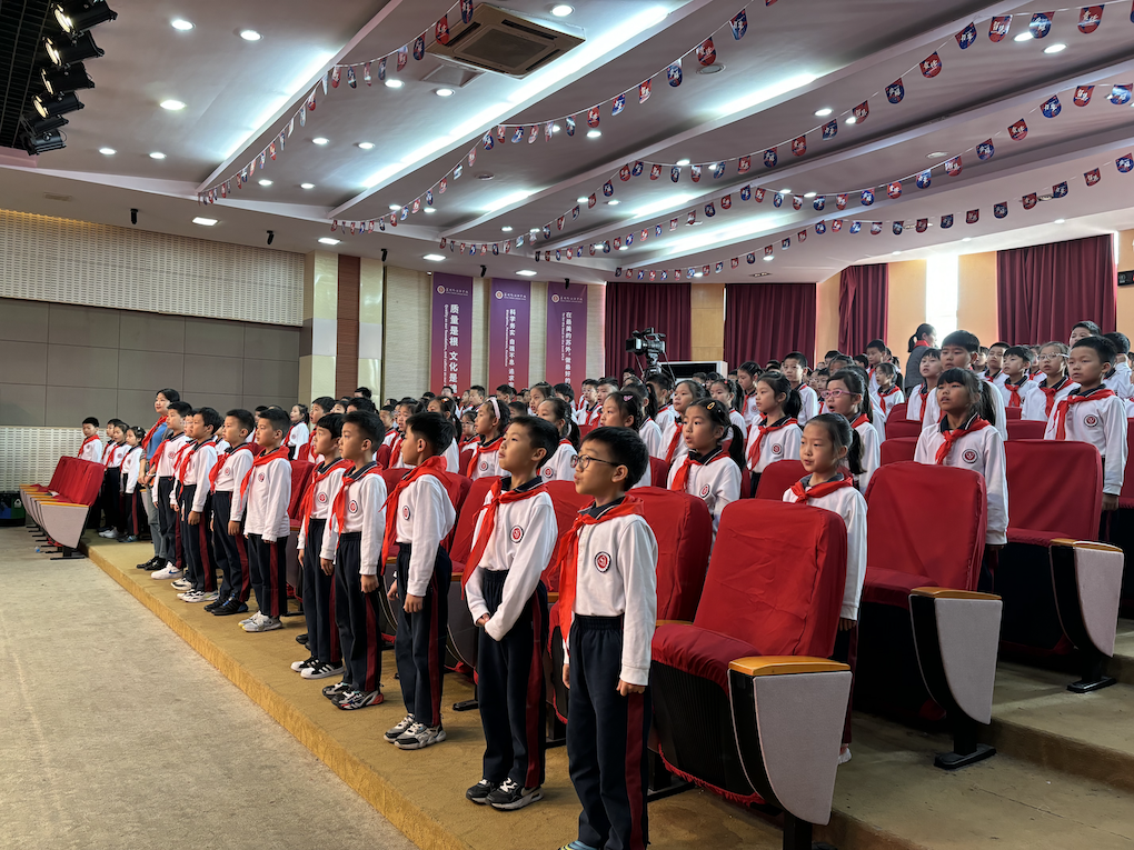 火红的队旗迎风飘扬,鲜红的领巾充满希望。金秋十月,在少先队建队节来临之际,苏州外国语学校小学部举行了二年级新队员入队仪式。激昂的出旗曲拉开了入队仪式的帷幕。在鲜红的队旗下,小学二年级新队员们被批准加入中国少年先锋队,成为一名光荣的少先队员。
