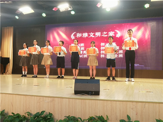 良好的班级是创建美好集体的必要因素,也是创建美丽苏外的根本。在各项检查中,徐主任为优秀班级分别颁发“阳光体育班级”“用餐尚礼班级”“和雅文明之家”与“优秀自主劳动班级”称号。鼓励大家坚持营造着良好的学习环境,践行着苏外初中学子的高标准、严规范。