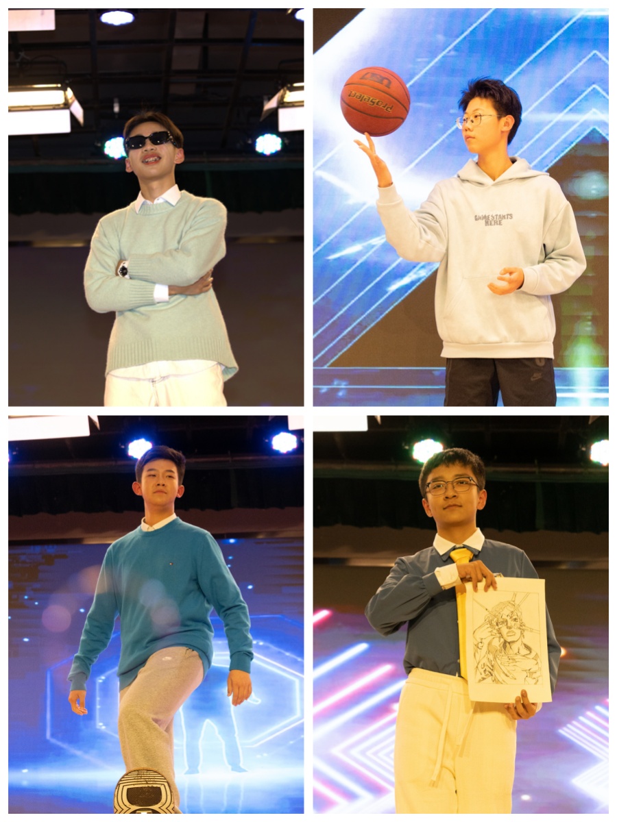 第一幕“韶华赋彩”:“年度青春派人物”获奖的同学们身着代表年级特色的服装(初一萌芽绿、初二梦想蓝)再次登场,以自信的步伐展现各自风采。他们是在数学世界探索的逻辑能手,是在辩论场闪耀的语言之星,也是在画布与琴键上挥洒才华的艺术精灵……他们的多元面貌,正是苏外教育理念最生动的注脚。