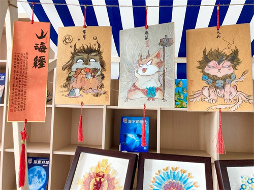 在学期结束之际,墨韵水痕社团学员们也收获满满,他们的《山海经》系列作品入选新区迎新文艺汇演美术特色展示,深受观者好评。