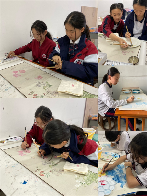 初中社团大部分同学已经有了一定的国画基础,老师根据学生们的已有水平进行了更加深入的教学。在课程的安排上,老师对线条以及设色两大板块加入了大量针对性的练习。通过一学期的训练,在社团老师的指导下,学生们取得了很大的进步和突破。学生们掌握了没骨花卉的绘画方法以及线描人物以及动物的技法。