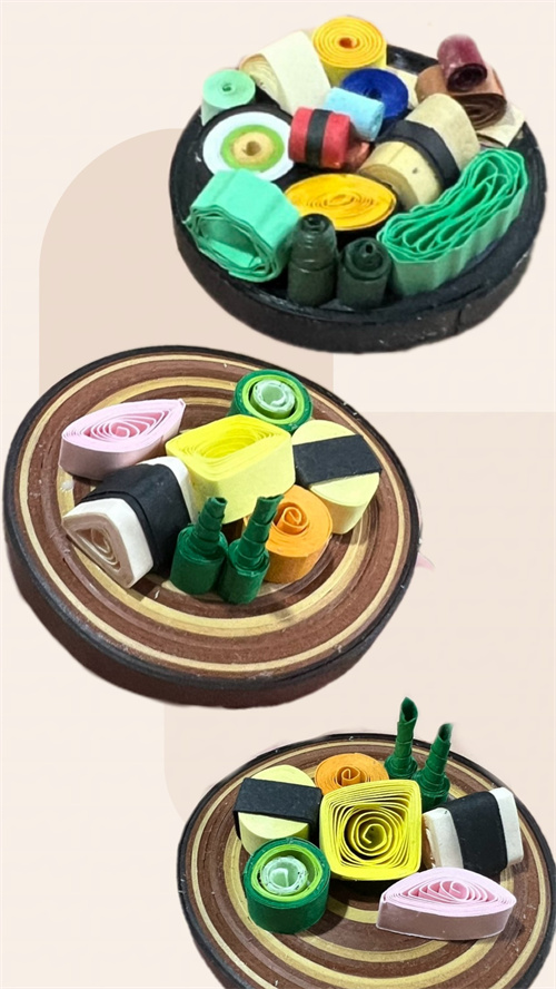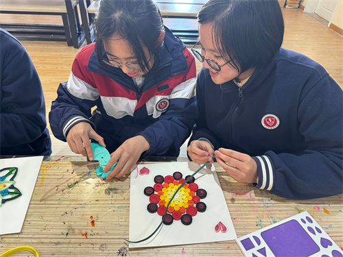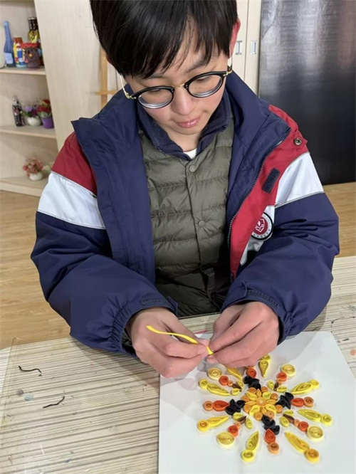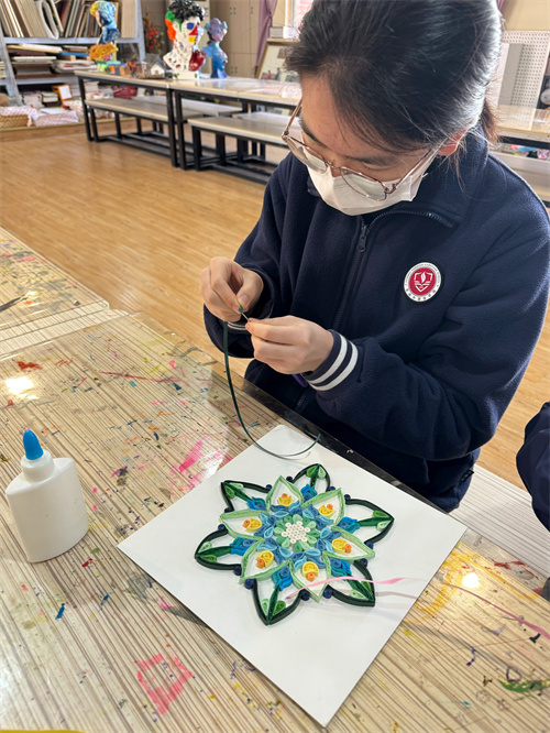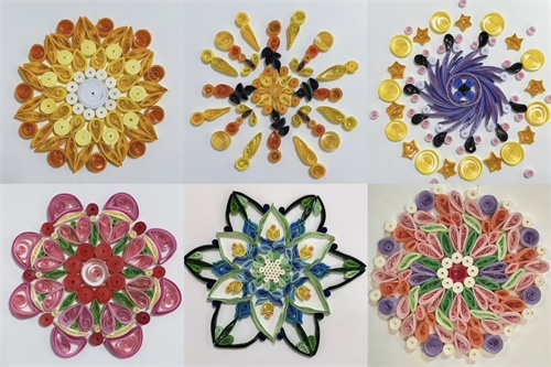 这学期,学生们通过对衍纸的初步了解,除了制作立体衍纸食玩,大作品依旧是曼陀罗衍纸。衍纸艺术最好的表现形式就是把它制作成花,因为它的色彩非常绚丽,适合做成花的成品。
